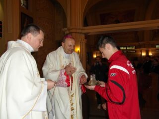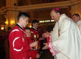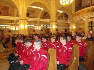 W homilii Ksiądz Biskup powiedział miedzy innymi : „Dziękujemy Bogu, że istnieje taka inicjatywa. Dziękujemy za tych, którzy inspirowali powstanie klubu, oraz za tych, którzy go prowadzą. Ten klub łączy zawodników i ich rodziny. Zawodnicy nie trenują już tylko dla siebie, robią to dla całej społeczności, dla miasta, a nawet dla Polski. Dziś sport, piłka nożna budują kulturę i świadomość wielu narodów. Dobre mecze i dobre zachowanie zawodników kształtują postawy wszystkich, którzy interesują się sportem.” Mówił o zasadach fair play, o uczciwości w sporcie i w życiu. Upominał, że najważniejsza jest walka z samym sobą, zwycięstwo nad sobą, nad namiętnością, nad grzechem.” Przywołał też postać Danuty Siedzikówny „Inki” – Podlasianki, sanitariuszki Armii Krajowej, zamordowanej przez UB. Wspominając jej życie i śmierć zwracał uwagę młodych ludzi, jak ważne jest, by zawsze, niezależnie od okoliczności zachować się jak należy. „Cokolwiek będziemy robić na tej ziemi, pamiętajmy, że czuwa nad nami Bóg, który kocha każdego człowieka” mówił i przypominał, że Bóg dał nam swego Syna, ale to od nas zależy, czy przyjmiemy dar wiary. Niezależnie od tego czy jesteśmy zawodnikami, czy widzami winniśmy mieć Chrystusa za mistrza” – mówił do młodych sportowców.