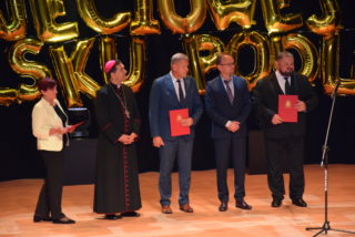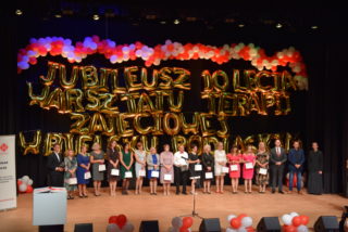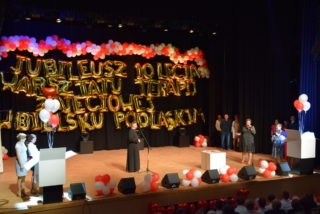 Województwo Podlaskie reprezentował Stanisław Derehajło – Wicemarszałek oraz Agata Puchalska – Dyrektor Biura Kultury Urzędu Marszałkowskiego Województwa Podlaskiego, natomiast PFRON – reprezentowała Dyrektor – Grażyna Bogdańska. Powiat Bielski reprezentował Sławomir Jerzy Snarski – Starosta Bielski wraz z Piotrem Bożko – wicestarostą oraz Przewodniczącym Rady Powiatu – Andrzejem Leszczyńskim. Wśród zaproszonych gości byli również samorządowcy oraz służby mundurowe z powiatu bielskiego: Eugeniusz Jakubowski – w zastępstwie Jarosława Borowskiego – Burmistrza Miasta Bielsk Podlaski, Raisa Rajecka – Wójt Gminy Bielsk Podlaski, Marcin Gawrysiak – Wójt Gminy Rudka, Mariusz Korzeniewski – Wójt Gminy Wyszki, Tadeusz Wielanowski- Sekretarz Gminy Wyszki, st. bryg. Waldemar Kudrewicz – Komendant Powiatowej PSP w Bielsku Podlaskim, Cezary Świstak – Nadleśniczy Nadleśnictwa Bielsk Podlaski, Tadeusz Zawistowski- Nadleśniczy Nadleśnictwa Rudka, Urszula Kitlas – Dyrektor Powiatowego Centrum Pomocy Rodzinie w Bielsku Podlaskim, Marzena Perzyna – Państwowy Powiatowy Inspektor Sanitarny w Bielsku Podlaskim, Henryk Zalewski – Kierownik Muzeum Obojga Narodów w Bielsku Podlaskim, Iwona Bielecka – Włodzimirow- Dyrektor Miejskiej Biblioteki Publicznej w Bielsku Podlaskim oraz w zastępstwie Elżbiety Fionik – Dyrektor Bielskiego Domu Kultury Elżbieta Gerez. Ponadto zaproszenie na Jubileusz przyjęli Mirosław Reczko – Dyrektor Samodzielnego Publicznego Zakładu Opieki Zdrowotnej w Bielsku Podlaskim oraz Arsealan Azzadin – Zastępca Dyrektora Samodzielnego Publicznego Zakładu Opieki Zdrowotnej w Bielsku Podlaskim. Oczywiście nie mogło zabraknąć też przedstawicieli Caritas Diecezji Drohiczyńskiej w osobie Łukasza Wasiluka – Dyrektora Domu Miłosierdzia im. Jana Pawła II w Sokołowie Podlaskim, Elżbiety Kryńskiej oraz Pawła Królasika. Wśród naszych sponsorów byli również Barbara Kotowicz – Dyrektor Banku Spółdzielczego w Brańsku, oddział Bielsk Podlaski w zastępstwie Prezesa Banku Spółdzielczego w Brańsku. W zastępstwie Huberta Bojdo- Prezesa Zarządu Scanmed S.A gościliśmy Karolinę Radomyską, Patrycję Sarnacką –Dyrektor Departamentu Kardiologii Scanmed S.A oraz Andrzej Borowskiego.
