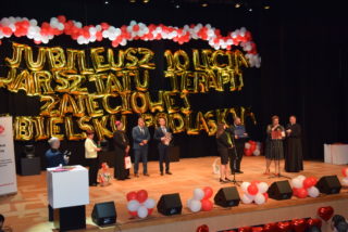 Po Mszy Świętej druga część uroczystości miała miejsce w Bielskim Domu Kultury. Rozpoczęła się od dostojnego poloneza w wykonaniu uczestników i kadry, który doprowadził do wzruszenia wielu zgromadzonych. Następnie wszyscy obejrzeli prezentację podsumowującą minione 10 lat działalności Warsztatu. Wśród przybyłych gości znaleźli się duchowni i przedstawiciele WSD w Drohiczynie: ks. dr hab. Tadeusz Syczewski – rektor WSD w Drohiczynie, ks. kan. Krzysztof Kisielewicz – proboszcz Sanktuarium Miłosierdzia Bożego w Sokołowie Podlaskim oraz ówczesny Dyrektor Caritas, ks. kan. Zbigniew Domirski – proboszcz par. Matki Bożej z góry Karmel w Bielsku Podlaskim, ks. Michał Sawicki – kapelana Warsztatu, ks. Patryk Nagórny, ks. Andrzej Kiersnowski, ks. Mateusz Gołoś, al. Maciej Mieszczyński oraz ks. Jarosław Szczerbacz – proboszcz par. Prawosławnej Narodzenia Świętego Jana Chrzciciela w Nowej Woli i jednocześnie Kierownik Warsztatu Terapii Zajęciowej w Nowej Woli.