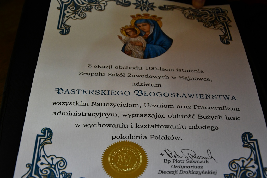 W homilii biskup pokreślił, że Szkoła świętująca swój jubileusz jest najstarszą w mieście. Od samego początku dobrze wpisała się w funkcjonowanie i charakter Hajnówki. „Już pierwsze lata działalności Szkoły pokazały, jak bardzo była potrzebna i jak dobrze spełniała swoją rolę. Była jednym z elementów określających status miejscowości Hajnówka, z czasem podniesionej od rango miasta. Przekazywała usystematyzowane informacje, wychowanie, przygotowanie do życia młodego pokolenia, wspomagała rodziny” – powiedział biskup. Wyraził wdzięczność wszystkim, którzy nie szczędzili swych sił w rozwój i działalność Szkoły.