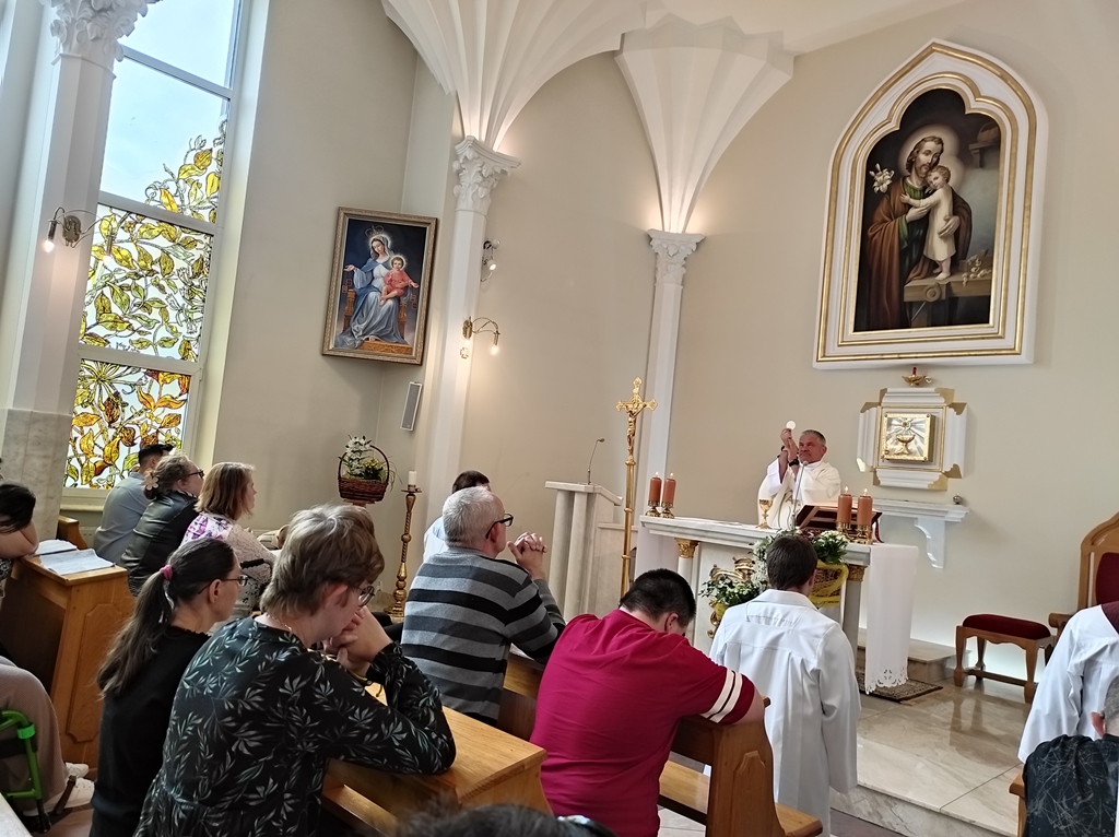 Gospodarze i goście modlili się na Mszy Św. w kaplicy pw. Św. Józefa, którą sprawował ks. Jarosław Błażejak. Kapłan zaprzyjaźniony jest z warsztatem od początku jego istnienia i jest niezawodnym wsparciem duchowym tego miejsca i ludzi. W kazaniu ks. Jarosław podkreślił obchodzone w tym dniu w Kościele, Święto Jezusa Chrystusa, Najwyższego i Wiecznego Kapłana. W prostych słowach objaśniał znaczenie tego święta. Zachęcał do modlitwy w intencji warsztatu, jego uczestników i wspierającego otoczenia.