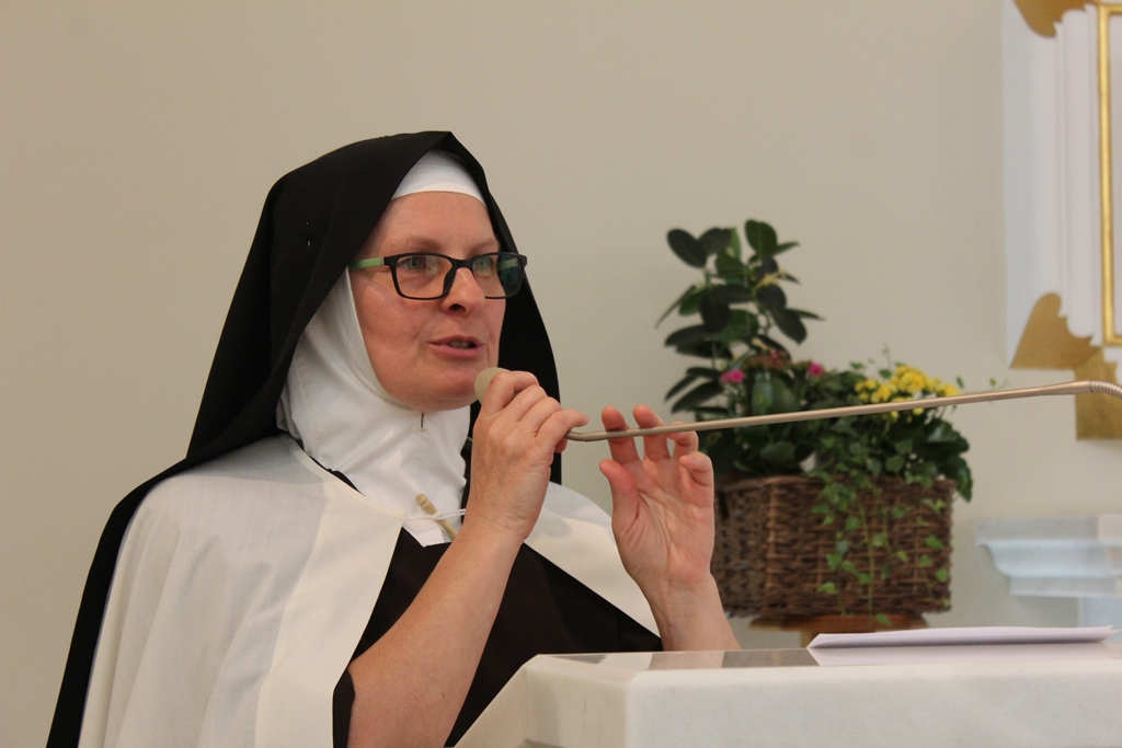 Wszyscy zebrani obejrzeli też prezentację fotografii z 20-letniej historii WZT. Za udział w spotkaniu dziękowała kierownik warsztatu s. Georgia. Na ręce siostry życzenia i gratulacje składali goście. Padło wiele ciepłych słów, a towarzyszyły im też piękne upominki. Obdarowani warsztatowicze nie pozostali dłużni i swoim gościom wręczyli pamiątkowe wizerunki Św. Józefa z dedykacją. Spotkanie zakończyła Apaga w klasztornych ogrodach.