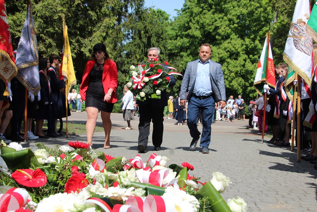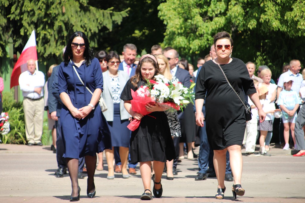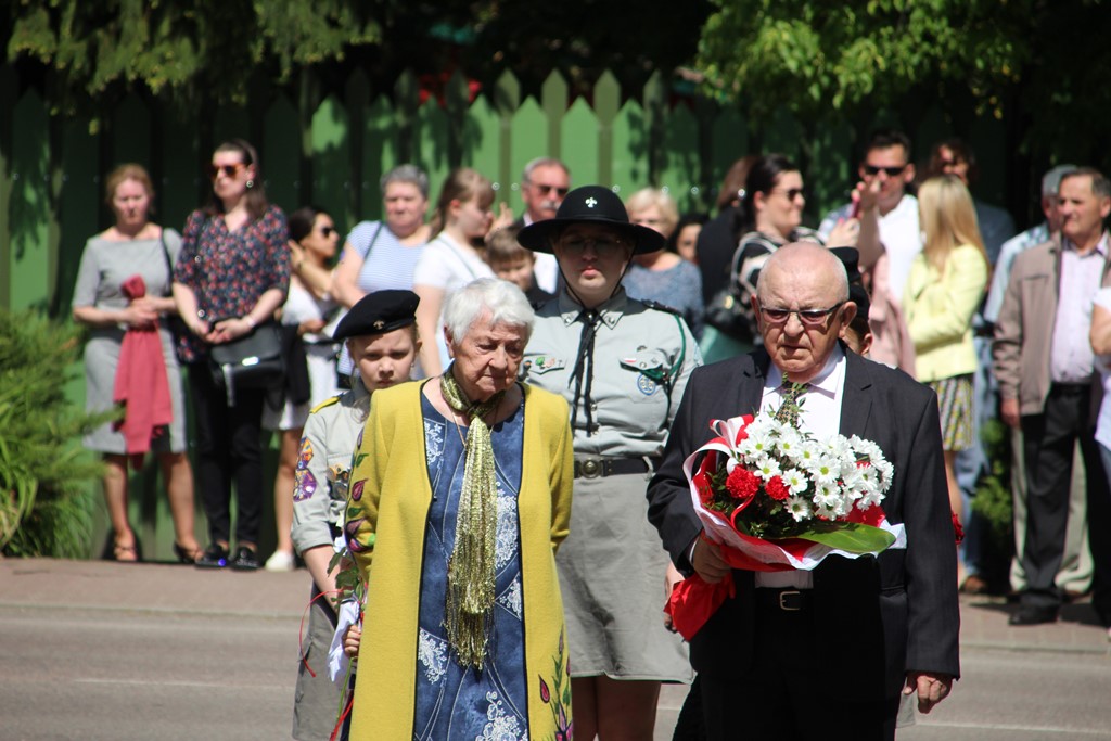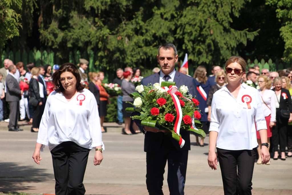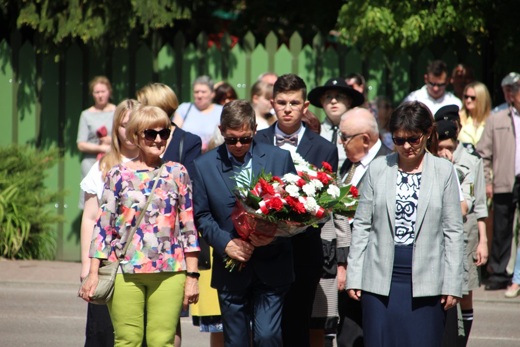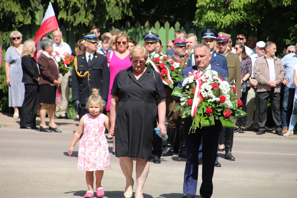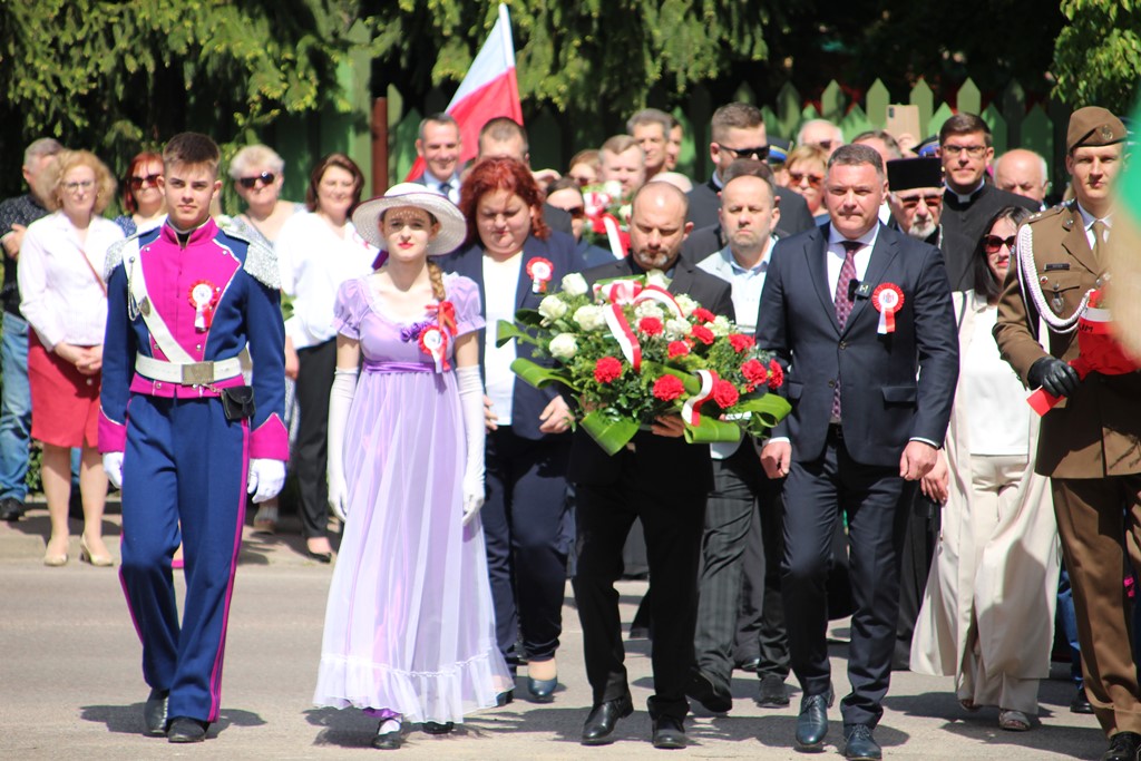 Kolejnym punktem obchodów było spotkanie przy pomniku Tadeusza Kościuszki przy ul. Leg. Piłsudskiego, gdzie uczestników witała orkiestra dętej OSP. Licznie zgromadzone delegacje składały kwiaty pod pomnikiem przy którym wartę pełnili reprezentanci Wojska Polskiego i harcerze z 33 Drużyny Harcerskiej Adept. Nie zabrakło też lokalnych akcentów przygotowanych przez mieszkańców zrzeszonych w określonych grupach. Tancerze z Małego Podlasia wzorem lat wcześniejszych zaprosili wszystkich do Poloneza, który zatańczono na ulicy. Kawalerzyści ze Szwadronu Kawalerii Ochotniczej po raz pierwszy publicznie zaprezentowali swój Proporzec, przygotowali też pokaz jazdy.
