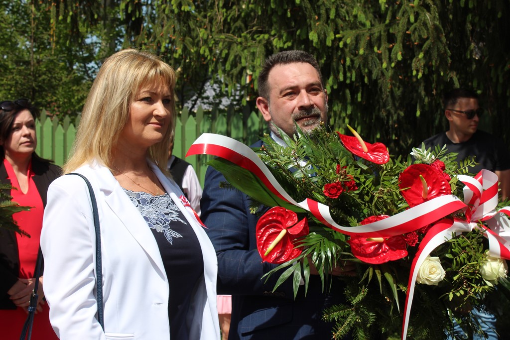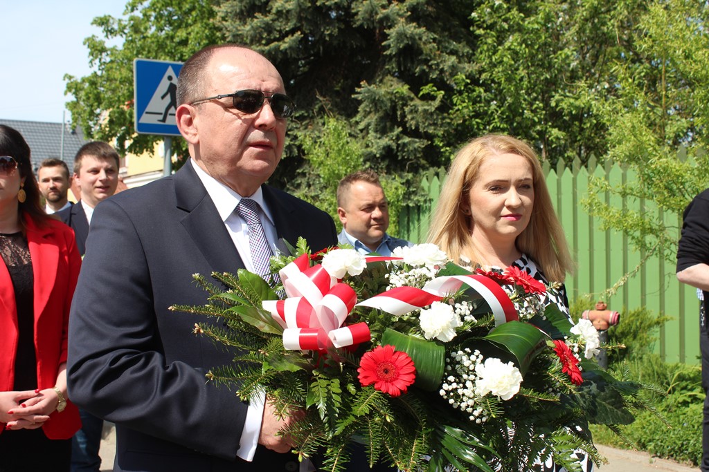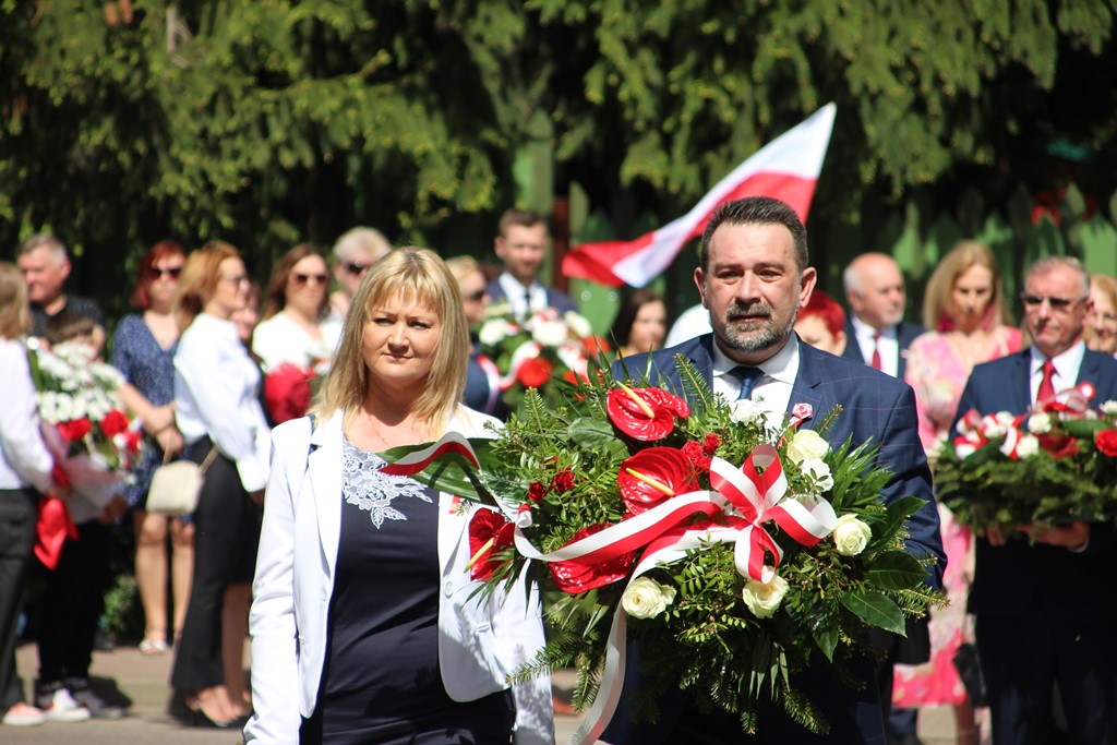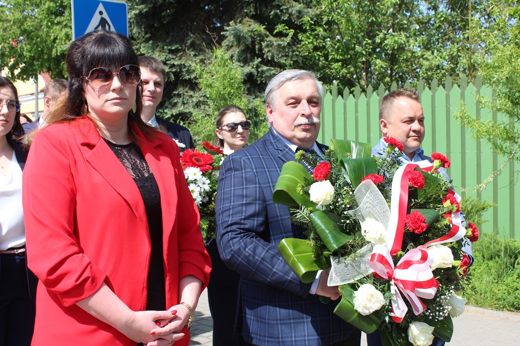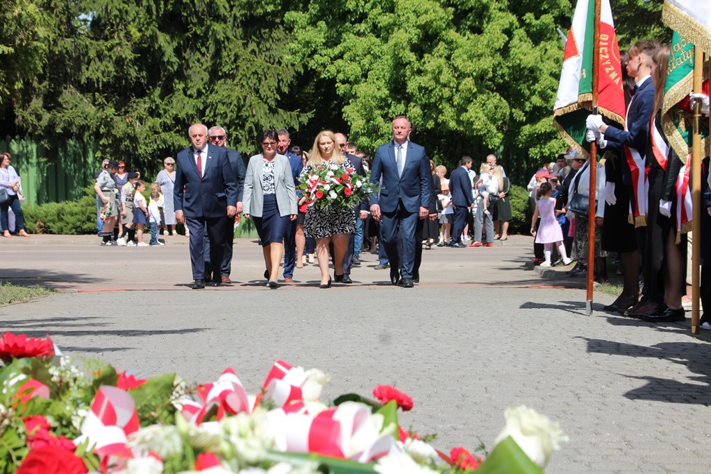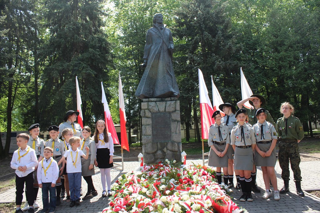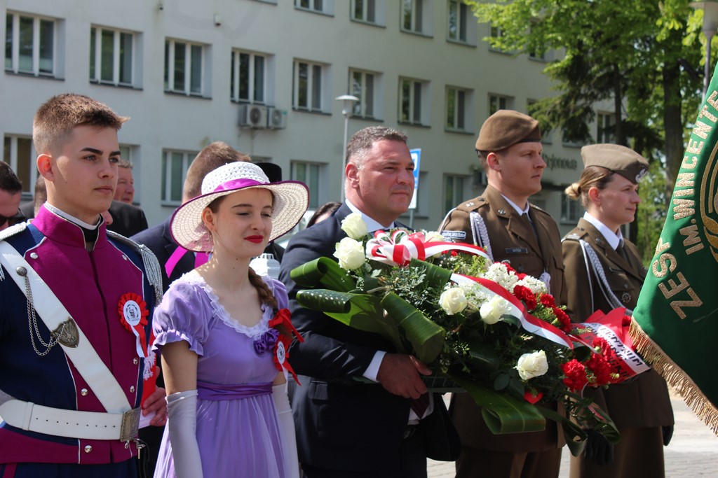 Kolejnym punktem obchodów było spotkanie przy pomniku Tadeusza Kościuszki przy ul. Leg. Piłsudskiego, gdzie uczestników witała orkiestra dętej OSP. Licznie zgromadzone delegacje składały kwiaty pod pomnikiem przy którym wartę pełnili reprezentanci Wojska Polskiego i harcerze z 33 Drużyny Harcerskiej Adept. Nie zabrakło też lokalnych akcentów przygotowanych przez mieszkańców zrzeszonych w określonych grupach. Tancerze z Małego Podlasia wzorem lat wcześniejszych zaprosili wszystkich do Poloneza, który zatańczono na ulicy. Kawalerzyści ze Szwadronu Kawalerii Ochotniczej po raz pierwszy publicznie zaprezentowali swój Proporzec, przygotowali też pokaz jazdy.