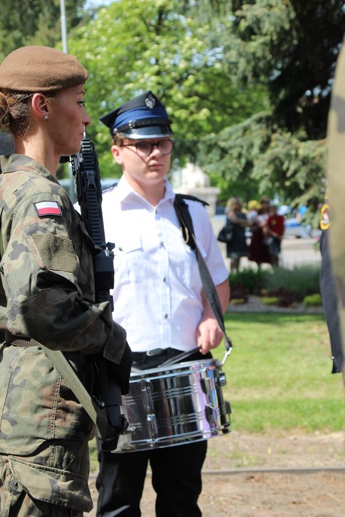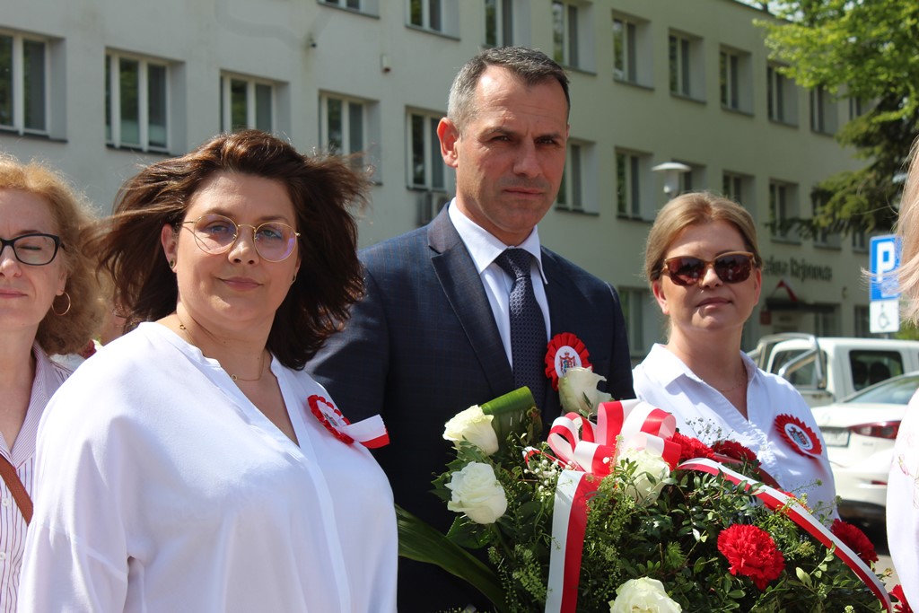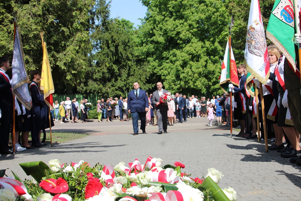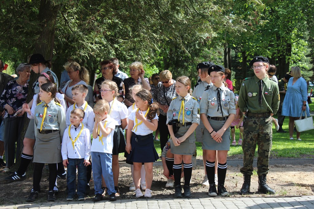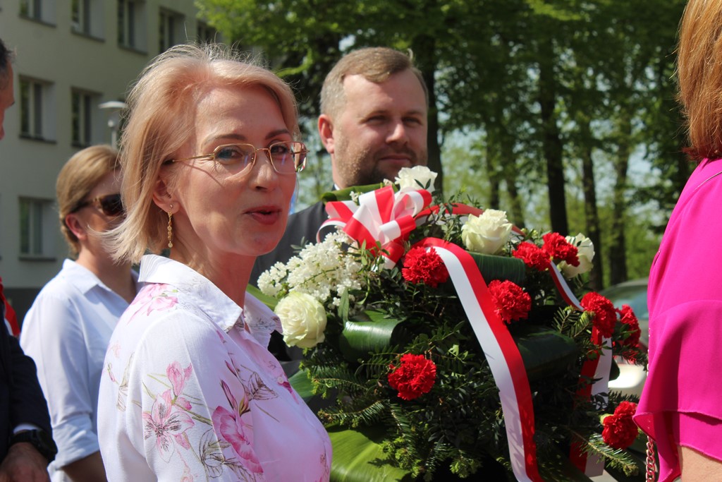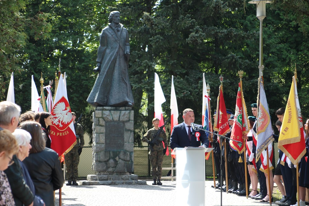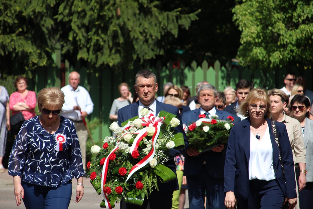Kolejnym punktem obchodów było spotkanie przy pomniku Tadeusza Kościuszki przy ul. Leg. Piłsudskiego, gdzie uczestników witała orkiestra dętej OSP. Licznie zgromadzone delegacje składały kwiaty pod pomnikiem przy którym wartę pełnili reprezentanci Wojska Polskiego i harcerze z 33 Drużyny Harcerskiej Adept. Nie zabrakło też lokalnych akcentów przygotowanych przez mieszkańców zrzeszonych w określonych grupach. Tancerze z Małego Podlasia wzorem lat wcześniejszych zaprosili wszystkich do Poloneza, który zatańczono na ulicy. Kawalerzyści ze Szwadronu Kawalerii Ochotniczej po raz pierwszy publicznie zaprezentowali swój Proporzec, przygotowali też pokaz jazdy.