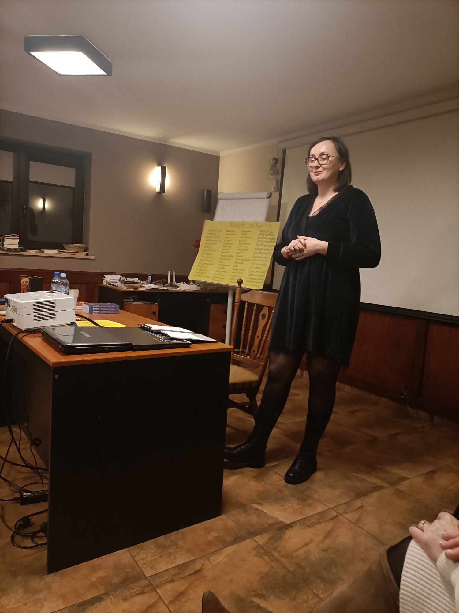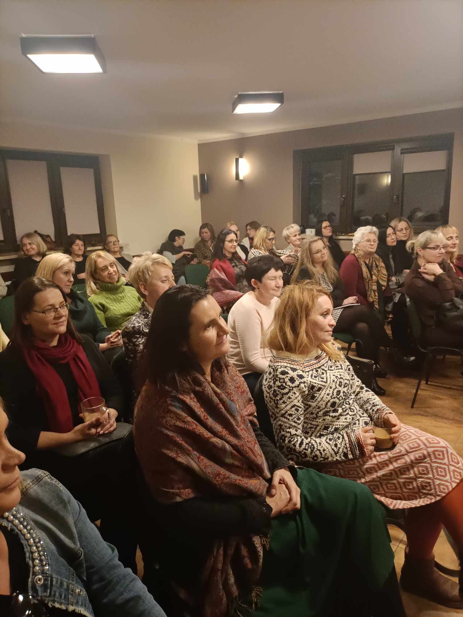 Kolejną prelegentką była Katarzyna Migas, uduchowiona kosmetyczka, organizująca Kobiece Wieczory w Łapach. Przypomniała nam że piękno duszy człowieka, widać przez jego oczy, uśmiech. Warto jednak zadbać o swoje ciało, którym obdarował nas Pan Bóg. Podała kilka trików szybkiego makijażu, prezentując je na jednej z uczestniczek. Jako ostatnia głos zabrała Iwona Kuc, wydawca, chrześcijański coacher. Mówiąc o wdzięczności zaproponowała ćwiczenie, w którym moglibyśmy okazywać wdzięczność sobie lub bliskiemu.