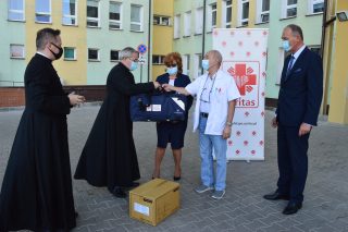 Dyrektor Caritas Polska – ks. Marcin Iżycki i dyrektor diecezjalnej Caritas ks. Łukasz Gołębiewski wręczyli respirator Pani dyrektor SPZOZ – Marii Sikorskiej oraz dyrektorowi ds. lecznictwa – Lechowi Dziedzic, dziękując tym samym wszystkim lekarzom i całemu personelowi medycznemu za poświęcenie i ogromny wysiłek włożony w ratowanie życia, szczególnie w tym trudnym czasie pandemii. Swoją wdzięczność wyraził także, wicestarosta – Pan Ryszard Domański. Akcja #WdzięczniMedykom została uruchomiona przez Caritas Polska w odpowiedzi na potrzeby szpitali i placówek medycznych znajdujących się na pierwszej linii frontu walki z epidemią koronawirusa. Dyrektor Caritas Polska odwiedził także Zespół Szkół w Repkach, przekazując uczniom – 32 tornistry wraz z wyprawką w środku w ramach akcji „Tornister Pełen Uśmiechów”. Dar od Caritas Polska dla dzieci z diecezji drohiczyńskiej zastał ufundowany przez Jastrzębską Spółkę Węglową oraz anonimowych darczyńców. Wydarzenie odbyło się z udziałem Dyrektor Zespołu Szkół w Repkach – Pani Marii Pietrzak oraz Wójt Gminy Repki – Pani Apolonii Stasiuk. Dyrektor Caritas diecezjalnej ks. Łukasz Gołębiewski wyraził nadzieję, że te drobne upominki sprawią choć trochę radości dzieciom i dodadzą im motywacji do nauki w rozpoczynającym się roku szkolnym. Tego dnia nie zapomniano o Domu Dziecka „Rafael” Caritas Diecezji Drohiczyńskiej w Wyrozębach, który otrzymał dofinansowanie od Caritas Polska na modernizację i zagospodarowanie terenu zielonego. Dzięki tej inwestycji udało się ułożyć między innymi kostkę brukową przy budynku. W dniu dzisiejszym dyrektor Caritas Polska Ksiądz Marcin Iżycki oraz Pan Michał Pyra – Prezes Zarządu Centrum Okopowa, mieli możliwość zobaczyć efekty nowo powstałej inwestycji, która wpłynęła na funkcjonalność otoczenia wokół budynku.