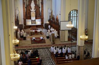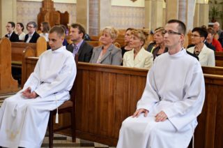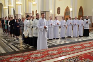 Uroczysta Eucharystia pod przewodnictwem Pasterza diecezji rozpoczęła się o godz. 12:30. Udział w niej wzięli ks. bp Antoni Dydycz, przedstawiciele Wyższego Seminarium Duchownego w Drohiczynie na czele z Rektorem uczelni ks. prof. dr. hab. Tadeuszem Syczewskim, zaproszeni kapłani, alumni, siostry zakonne, rodzina i przyjaciele nowo wyświęconych diakonów.