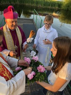 W homilii ks. Biskup zachęcał młodzież, aby nieustannie poznawała Jezusa i kochała Go, ponieważ miłość Boża jest najważniejsza. Po zakończonej Mszy św., w uroczystej procesji, która wyruszała ze świątyni, Ekscelencja pobłogosławił nowe ogrodzenie, które zostało wykonane wokół kościoła. Następnie procesja udała się nad stawy, znajdujące się na posesji przy plebanii. Ks. Biskup odmówił modlitwę i poświecił figurę św. Jana Chrzciciela, która stanęła nieopodal stawów. Jak wspomniał dziekan bielski ks. prał. Kazimierz Siekierko, miasto Bielsk Podlaski zbudowane zostało na terenach podmokłych, bagiennych. W 100 lecie odzyskania niepodległości przez naszą Ojczyznę, chcemy prosić, by św. Jan prowadził nas do źródła wiary, wstawiał się za mieszkańcami i chronił przed nieszczęściami. Przy tej okazji dokonano obrzędu poświęcenia wody w stawach. Tradycyjnie dziewczęta wypuściły na wodę wianki z kwiatów.