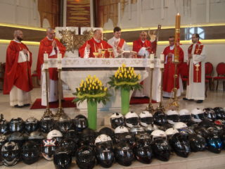 Jubileuszową Mszę św. sprawował wraz kapłanami, miłośnikami jednośladów, ks. biskup Tadeusz Pikus, który też wygłosił okolicznościową homilię. Po Mszy św. ks. biskup poświęcił rekordową liczbę – tysiąca jednośladów.