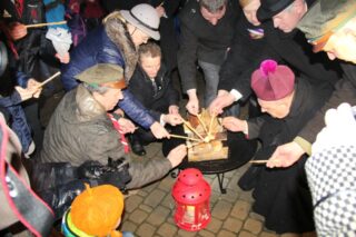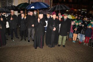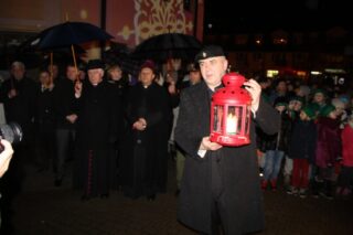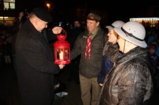 Ks. bp Tadeusz Pikus zapalił od Betlejemskiego Światła Pokoju ognisko oraz przekazywał go przybyłym. Zabierając głos powiedział, że to światło daje zawsze nadzieję, gdyż przychodzi ono z miejsca, w którym sam Chrystus przyszedł na świat, aby dać nadzieję wszystkim ludziom. Nawiązując do tegorocznego hasła przyświecającego akcji przekazywanie Betlejemskiego Światła Pokoju, które brzmi: ”Zauważ człowieka”, podkreślił potrzebę poszukiwania godności człowieka.