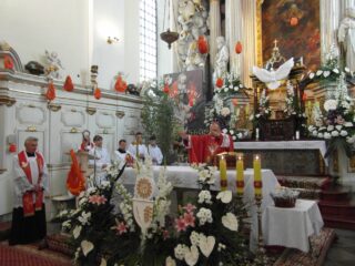 Dzisiaj przyjmujecie sakrament bierzmowania, którzy uzupełnia wielkie dary Boga. Już poprzez Chrzest Święty każdy ochrzczony korzysta z cnót wielkich jakimi są wiara, nadzieja i miłość. Dziś otrzymujecie wspaniałe wyposażenie w postaci darów Ducha Świętego. (…) Pod wpływem Ducha Świętego, który czyni z nas Świątynię możemy w pełni świadomie mówić do Boga – Ojcze.