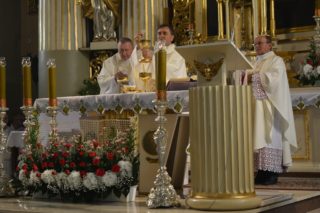 Mszę św. poprzedziło uroczyste wejście Pasterza Diecezji, księży, asysty kościelnej do Bazyliki. Wokół kościoła, przed kościołem, przy pomniku Jana Pawła II, w kościele licznie zgromadzeni wierni. Pasterza diecezji, kapłanów przywitał ks. kan. Ryszard Zalewski, proboszcz Bazyliki i dziekan bielski.