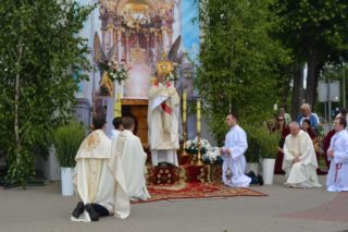 „W procesji idąc za Jezusem Eucharystycznym czujemy się w sposób wyjątkowo zjednoczeni, bo Bóg nas jednoczy, czujemy się silniejsi, że On jest tak blisko, że jest On na czele naszego pochodu życiowego. Mijaliśmy po drodze reklamę, że jest końcówka jakichś produktów, jest zniżka, okazja, żeby to kupić. Czasem próbuje się nas przekonać, że chrześcijaństwo to jest końcówka w XXI w. Myślę, że takie uroczystości i takie publiczne oddanie czci Panu Bogu utwierdza nas, że tak nie jest, że Kościół Chrystusowy będzie trwał do końca ziemi. Chcemy być sługami naszego Pana, chcemy czerpać moc, która rozchodzi się z Jego otwartego, miłującego serca, chcemy być otwarci na prawdę, przez którą pokazuje On nam drogę – mówił dziękując wszystkim uczestniczącym w procesji przed udzieleniem pasterskiego błogosławieństwa bp Sawczuk.