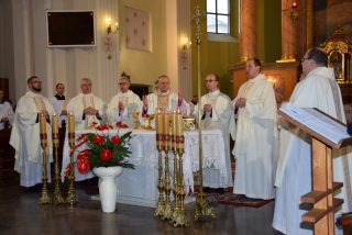 Uroczystej Eucharystii przewodniczył i homilię wygłosił ks. bp Tadeusz Pikus. Msza Święta rozpoczęła się odśpiewaniem hymnów: Akcji Katolickiej „My chcemy Boga” oraz Katolickiego Stowarzyszenia Młodzieży „Hej do apelu stańmy wraz”. W homilii biskup Tadeusz nawiązując do obchodzonej uroczystości, przypomniał zgromadzonym prawdę o tym, iż Królestwo Jezusa nie jest z tego świata, ale króluje On w niebie. Jego królestwo oparte jest na prawdzie oraz sprawiedliwości i po to właśnie przyszedł na świat, aby dać świadectwo prawdzie. Jak zauważył ksiądz biskup słowa hymnów, zarówno AK, jak i KSM, wyrażają wielkie umiłowanie do naszej ojczyzny, jednak chrześcijanin nie może zapomnieć, że jego ojczyzną jest również niebo.