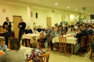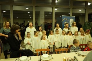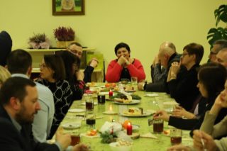 Druga cześć uroczystości odbyła się u sióstr Loretanek w Loretto, gdzie po radosnym odśpiewaniu kolęd i odczytaniu Słowa Bożego, symbolicznie podzielono się opłatkiem. Czas wspólnego obiadu i słodkiego poczęstunku ubogacił występ scholii dziecięcej z parafii Łochów, pod kierunkiem Sylwii i Kamila Kołodziejek, którzy wspierają swoją posługą wspólnotę Domowego Kościoła.