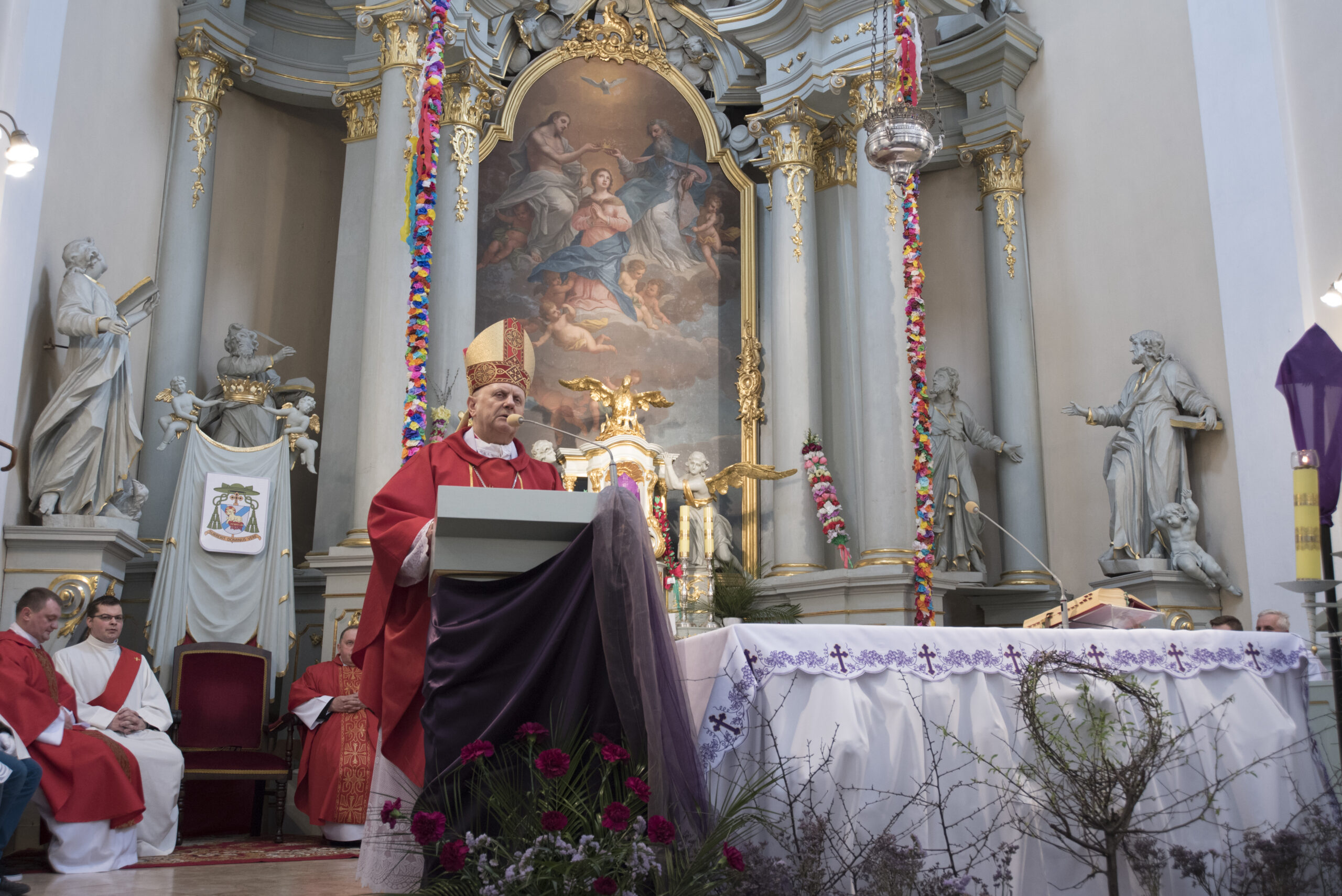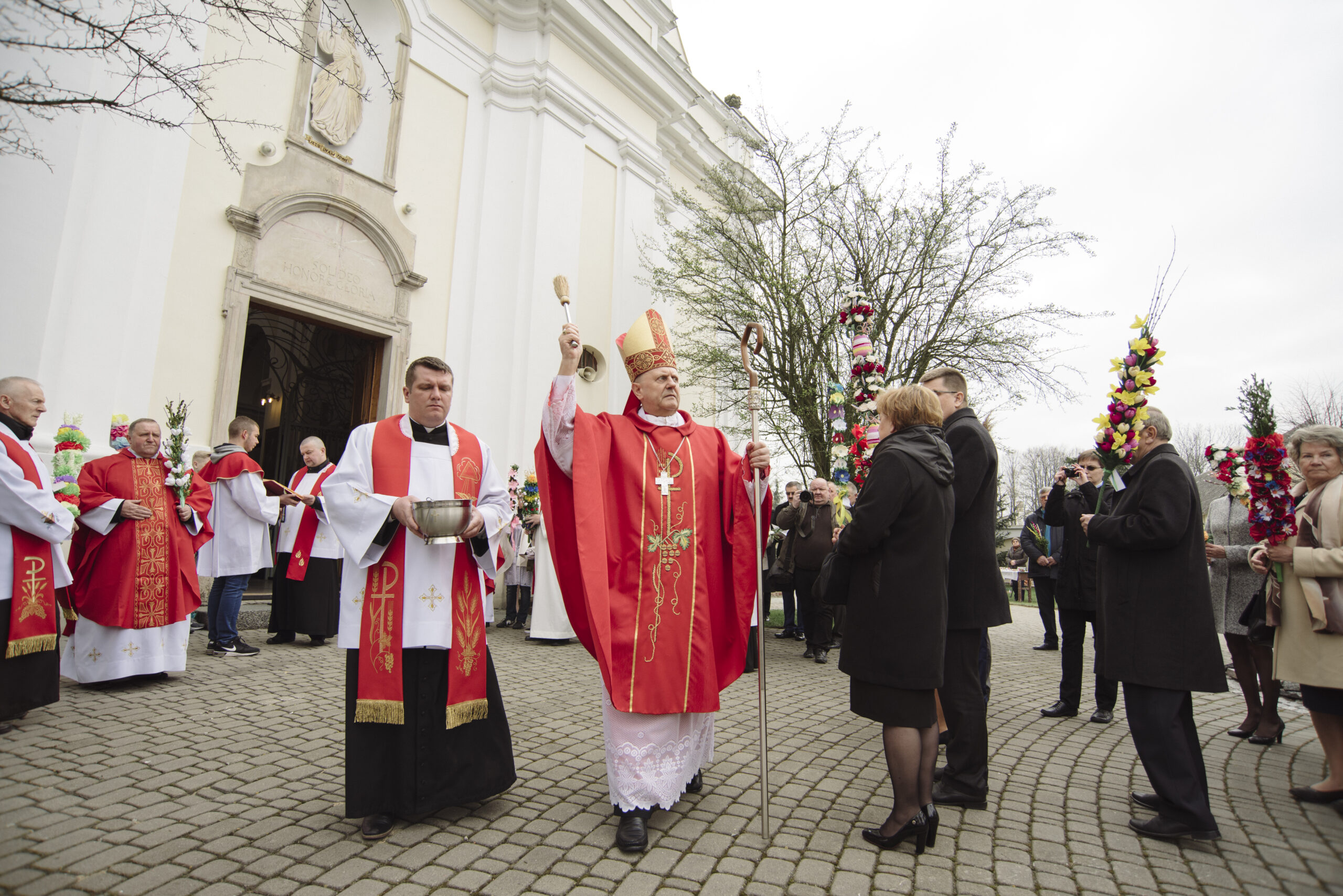 Już o godz. 9:30 na placu przed plebanią przy kościele Trójcy Przenajświętszej w Ciechanowcu zebrali się uczestnicy konkursu, aby zaprezentować swoje prace. Procesję Niedzieli Palmowej do kościoła parafialnego poprowadził ks. bp Tadeusz Pikus, aby o godz. 10:00 przewodniczyć uroczystej Mszy św. i wygłosić słowo Boże.