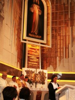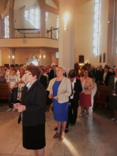 21 maja, ponad 450 członków Żywego Różańca wschodniej części diecezji, przekroczyło Drzwi Święte bielskiej świątyni Miłosierdzia Bożego. Program czuwania wypełniła konferencja, Droga Światła, Eucharystia oraz adoracja Najświętszego Sakramentu połączona z modlitwą różańcową i Koronką do Bożego Miłosierdzia. Konferencję p.t. „Miłosierdzie Boże ratunkiem dla świata” wygłosił ks. Roman Kowerdziej. W wystąpieniu nawiązał m.in. do objawień fatimskich, gdyż Orędzie o Bożym Miłosierdziu uzupełnia się z Orędziem Fatimskim. Prawda zawarta w Dzienniczku mówi nam, czym jest Boże Miłosierdzie i zachęca nas do bezgranicznego zaufania. Z Fatimy zaś płynie przekaz mówiący, że Boże Miłosierdzie to dar, który możemy otrzymać także za pośrednictwem Maryi, poświęcając się Jej Niepokalanemu Sercu. Następnie, w duchu wiary i z modlitwą, rozważaliśmy kolejne „spotkania” Zmartwychwstałego Jezusa z uczniami i Marią Magdaleną. Kolejny punkt programu, to Msza święta pod przewodnictwem miejscowego proboszcza, ks. Dariusza Kujawy. W homilii mówił o Matce, która w sposób szczególny i wyjątkowy, jak nikt inny, doświadczyła miłosierdzia. Nikt tak jak Maryja nie poznał głębokości tajemnicy Boga, który stał się człowiekiem. Wszystko w Jej życiu zostało ukształtowane przez obecność miłosierdzia. Nikt tak jak Maryja, nie przyjął sercem tajemnicy Boskiego wymiaru Odkupienia, która dokonała się na Kalwarii. To Jej wiara winna być dla nas wzorem do naśladowania. Po Eucharystii i odśpiewaniu Litanii Loretańskiej, ks. proboszcz i miejscowi członkowie Żywego Różańca zaprosili na poczęstunek. Następnie rozpoczęliśmy adorację Najświętszego Sakramentu. Trwając przed Panem Jezusem, ukrytym w białej Hostii śpiewaliśmy pieśni uwielbienia, dziękczynienia, ale i przepraszaliśmy. Do adoracji zaprosiliśmy Maryję, rozważając tajemnice chwalebne Różańca św. Nasze czuwanie zwieńczyło odśpiewanie Apelu Jasnogórskiego. Na podkreślenie zasługuje fakt, by pełniej „czerpać ze Zdroju Miłosierdzia”, bardzo wielu uczestników czuwania, dzięki miejscowym kapłanom, mogło skorzystać z sakramentu pojednania.
