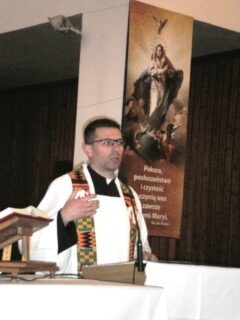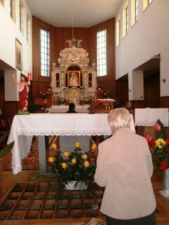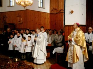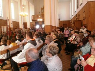 „Nawracajcie się i wierzcie w Ewangelię (Mk 1,15)” – to hasło roku duszpasterskiego, ale i temat wiosennego czuwania członków Wspólnot Maryjnych. Pierwsze takie czuwanie odbyło się w pierwszą sobotę miesiąca maja w Sanktuarium Maryjnym Matki Bożej Pocieszenia w Łazówku, w dzień ustanowiony przez ówczesnego ks. biskupa A. Dydycza, wspomnieniem Matki Bożej Łazówkowskiej. Na czuwanie przybyło ok 500 osób z dekanatów: łochowskiego, sokołowskiego, sterdyńskiego i węgrowskiego oraz wielu kapłanów. Z parafii w Jabłonnie Lackiej pieszo przybyło 88 parafian z ks. prał. J. Cudnym. Piesza pielgrzymka przybyła także ze Sterdyni z wikariuszem ks. P. Łozą i siostrą ze Zgromadzenia Sióstr Opatrzności Bożej. Czuwanie rozpoczęła Eucharystia pod przewodnictwem pasterza diecezji ks. biskupa T. Pikusa. Jej intencją przewodnią była modlitwa wynagradzająca Niepokalanemu Sercu Maryi za zniewagi i za bluźnierstwa. W homilii, przewodniczący celebry mówił m. in. ”Nawrócenie nasze, to zwrócenie się do Boga, odwrócenie się od grzechu i przyjęcie zaproszenia Jezusa Chrystusa, a tym zaproszeniem są Słowa: Jeśli kto chce iść za Mną, niech co dnia bierze krzyż swój i niech Mnie naśladuje! (Łk 9,23). Jeśli kto chce – tu nie ma nakazu, to apel do wolności człowieka; chodź za mną, odwróć się od tego co zgubne. My dzisiaj żyjemy dobrze, syci, może i wina nie brakuje, jak w Kanie. Żyjemy sobie, jak pasażerowie na Titaniku 103 lata temu, bezpieczni, rozbawieni, ale nagłe zderzenie i katastrofa. Czyja? – katastrofa ludzi, nie statku”. Po zakończonej Eucharystii dziekan dekanatu sterdyńskiego ks. T. Pełszyk poprowadził modlitwę różańcową rozważając tajemnice radosne Różańca św. Po blisko 2,5-godzinnej modlitwie nastąpiła przerwa. Miejscowy ks. proboszcz R. Krasowski zaprosił uczestników do wiejskiej stodoły, gdzie czekały z wielkimi sercami parafianki tej niewielkiej parafii, z gorącą kawą i herbatą przy stołach zastawionych smakowitymi ciastami. Kolejny punkt programu realizował ks. K. Lipczyński. Podczas konferencji, na przykładzie objawień Matki Bożej w Kibeho w Rwandzie przedstawił konsekwencje zlekceważenia Bożego wezwania do nawrócenia. Mówił m. in. „Matka Boża, aby przeszkodzić złemu duchowi w jego złowieszczych planach, objawiając się w bardzo trudnych momentach dla ludzkości, przychodzi aby nas ratować. Maryja ukazując się w Kibeho w Rwandzie, trzem miejscowym uczennicom gimnazjum, prosząc w ich języku o nawrócenie apelowała; Okażcie skruchę, żałujcie, żałujcie! Nawróćcie się, kiedy jest jeszcze czas. Mówiła: Dzisiaj wielu ludzi nie potrafi już prosić o przebaczenie. Ci ludzie znów krzyżują Syna Bożego. Przyszłam wam o tym przypomnieć szczególnie tu, w Rwandzie, gdyż znajduję tu jeszcze ludzi pokornych, którzy nie są przywiązani do bogactw i pieniędzy.” Po konferencji, kolejna uczta duchowa, pozwalająca bardziej przylgnąć do naszego Zbawiciela, adoracja Najświętszego Sakramentu, którą tradycyjnie prowadził ks. R. Kowerdziej. To czas, kiedy można prosić, dziękować, ale i wsłuchiwać się co mówi Chrystus. Nasze czuwanie zakończyliśmy Apelem Jasnogórskim i rozjechaliśmy się w różne strony, zastanawiając się zapewne, czy jesteśmy gotowi na „katastrofę”.