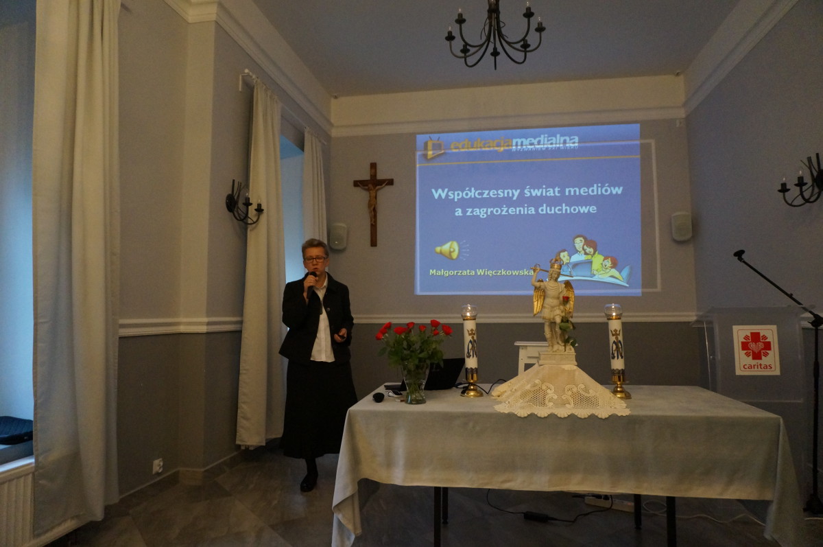 Podczas warsztatów katecheci usłyszeli o konkretnych zagrożeniach duchowych i medialnych, o wydawanych książkach opisujących profanację Eucharystii i symboli naszej wiary, a także jak się przed nimi bronić. Najprościej uciekać się do Bożego Miłosierdzia. Kiedy po ludzku przychodzi zwątpienie i już nic nie da się zrobić, to człowiek niewierzący już nie ma się do kogo zwrócić – sam dla siebie nie ma już nadziei. Człowiekowi wierzącemu zawsze zostaje jeszcze: „Jezu ufam Tobie”. Bóg cierpliwie dotrze ze swoja pomocą. Musimy tylko ufać.