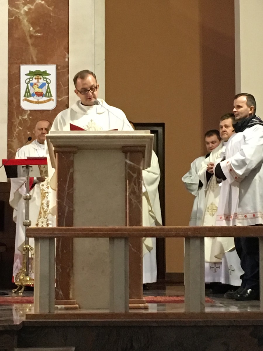 Rekolekcjonista opowiadał o peregrynacji po diecezjach polskich figury św. Michała z groty objawień z Gargano we Włoszech. Przybliżył jego postać jako ducha ubranego w strój rzymskiego legionisty trzymającego na łańcuchu, pod nogami diabła, potwora o twarzy małpy, udzie kozła, pazurach lwa i ogonie węża. Zachęcał do przyjęcia szkaplerza i przystąpienia do Bractwa Św. Michała Archanioła.