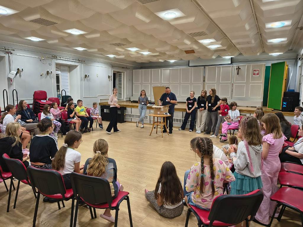 Warsztaty muzyczne były jednym z filarów programu – codziennie uczestnicy pracowali nad emisją głosu, prowadzeniem śpiewu i wspólnym brzmieniem. Były także zajęcia taneczne, próby liturgiczne, a nawet nagrania w studiu! Całość dopełniały radosne aktywności: gra terenowa, basen, Wesolandia, park trampolin, kino, a także – z humorem i entuzjazmem przyjęte – warsztaty „Pizzermena”.