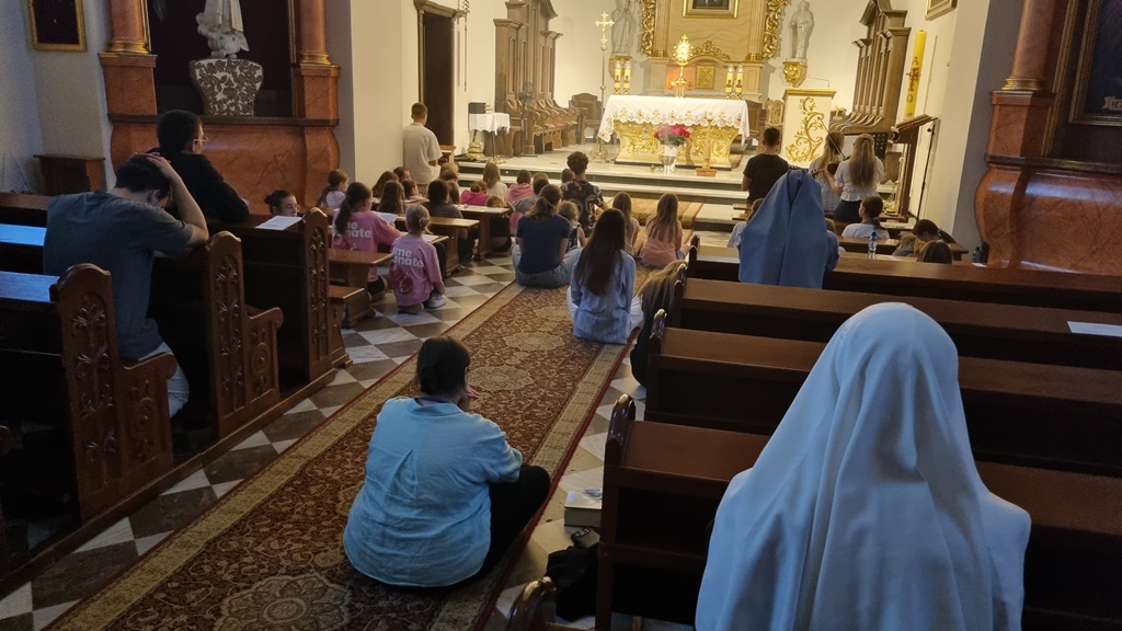 Choć był to pierwszy tego typu wyjazd, od początku widać było, że uczestnicy bardzo potrzebują takiej przestrzeni. Codzienne spotkania w grupach i wspólna modlitwa pomogły im nie tylko lepiej się poznać, ale też odkrywać piękno służby śpiewem i pogłębiać relację z Bogiem. Rano rozbrzmiewały jutrznie, wieczorem – adoracje i apele, a w centrum każdego dnia była Eucharystia, również w takich miejscach jak sanktuarium w Domanowie.
