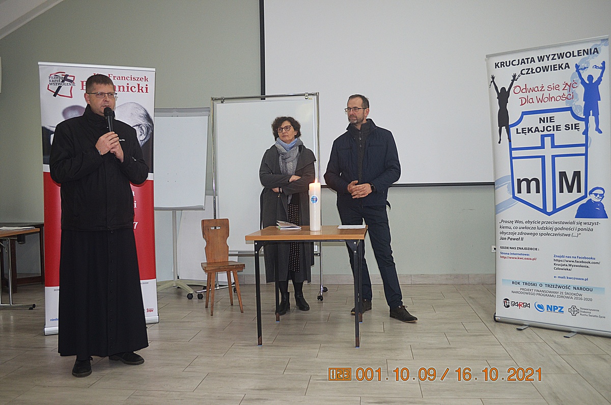 Kolejnym prelegentem był ks. Janusz Bolewski, który odniósł się do treści zawartych w wystąpieniu poprzedników. Przybliżył znaczenie i zasady pełnienia funkcji animatora zwłaszcza w kontekście wspólnoty Domowego Kościoła. Głos zabrali także Ireneusz i Barbara Siemek z Kamionny przedstawiając najbliższe dzieła Krucjaty Wyzwolenia Człowieka, które będą podejmowane w diecezji i na szczeblu centralnym tej struktury. Po części wykładowej nastąpiła praca w grupach w trakcie której dzieliliśmy się naszymi przemyśleniami i doświadczeniami płynącymi z dawania siebie innym poprzez posługę animatorską.
