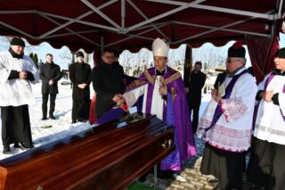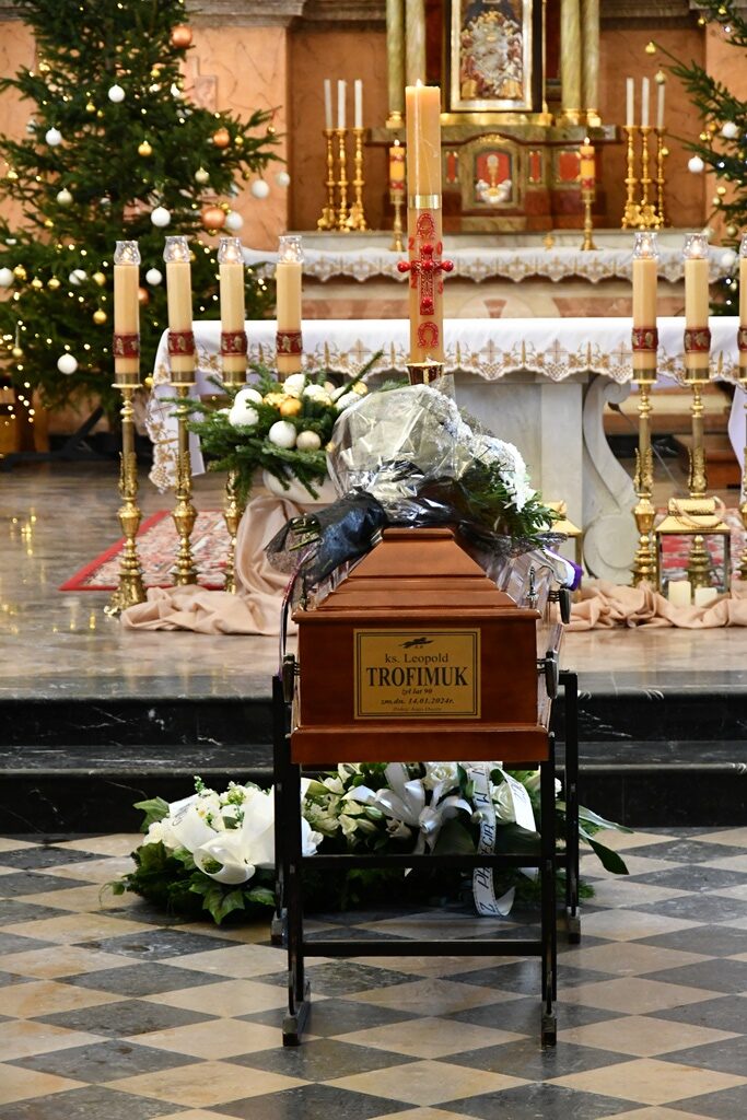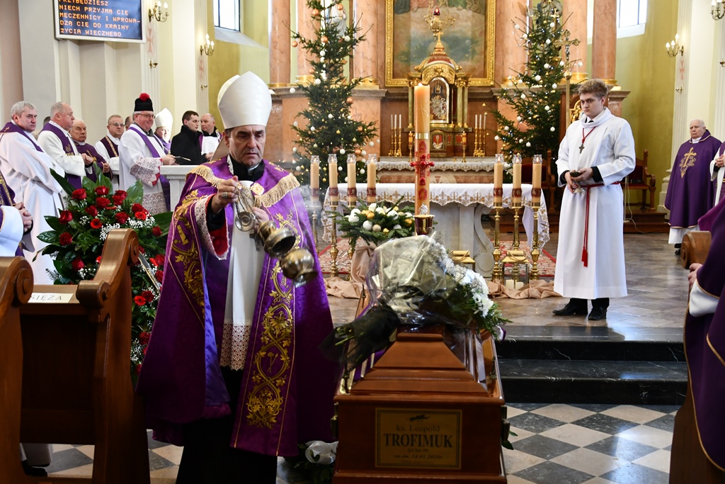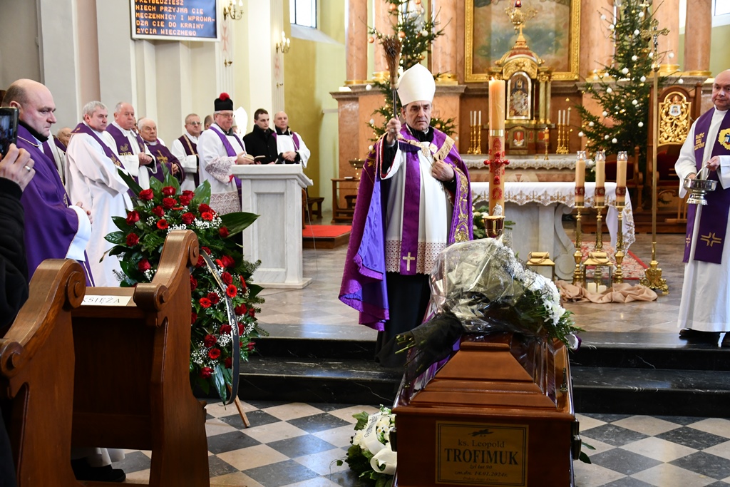 Bp Piotr Sawczuk 17 stycznia 2024 r. w drohiczyńskiej katedrze przewodniczył Mszy św. pogrzebowej za śp. ks. Leopolda Trofimuka, który w wieku 90 lat odszedł do Domu Ojca.