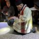 Po przyjściu pielgrzymki do ostatniej stacji, ksiądz Proboszcz zapukał do drzwi świątyni jubileuszowej, które otworzył ks. Tadeusz Kryński – dziekan ciechanowiecki. Przejście przez drzwi świątyni symbolizuje odnowienie wyznania wiary w Pana Jezusa.