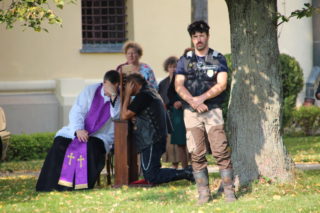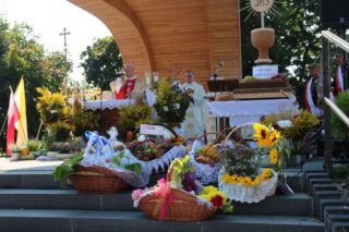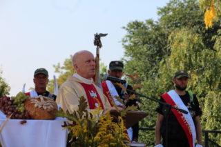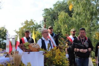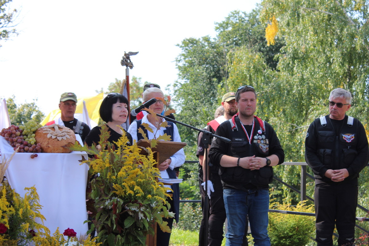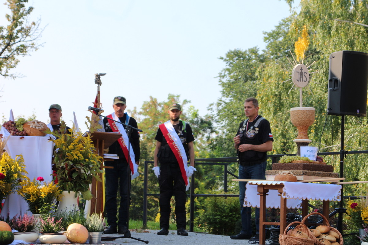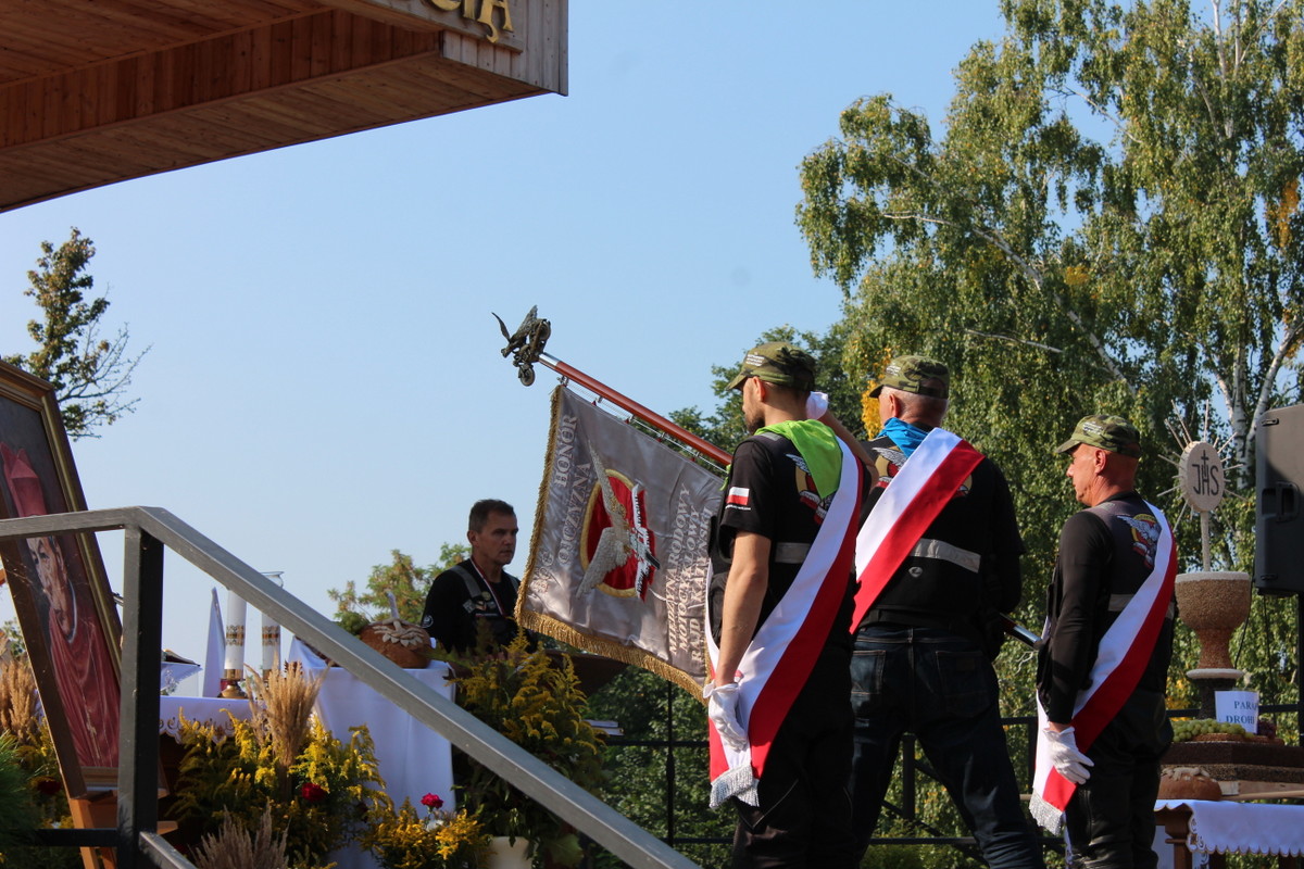 Uczestnicy Rajdu aktywnie uczestniczyli w Eucharystii, dołączając do lektorów i służby liturgicznej, obecny był też poczet sztandarowy.W homilii ks. Henryk Polak przypomniał postacie kapłanów związanych z Drohiczynem, których losy były też losami Sybiraków, prześladowani i więzieni, nigdy nie stracili wiary, a nawet w więziennych murach silną wiarą w Boga wspierali współwięźniów. Opowieść o losach ks. Jana Wasilewskiego i ks. Michała Wilniewczyca, których życie związane było z Drohiczynem, a dziś prochy ich złożone są także w tej ziemi, była poruszającym świadectwem wiary i patriotyzmu. Drohiczyn, jako miejsce złożenia prochów tych kapłanów, jest też miejscem, które w naturalny sposób jest związane z Międzynarodowym Motocyklowym Rajdem Katyńskim – podkreślał kapłan. Kaznodzieja wyjaśniał też, że połączenie uroczystości patriotycznych z dożynkami, to też pokazanie, że na polskiej wsi nie brak patriotów, a polscy rolnicy nigdy nie ulegli żadnym naciskom i polski rolnik zachował pamięć, wiarę i patriotyzm.