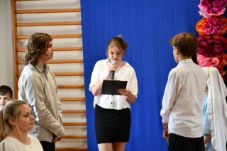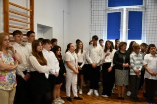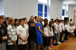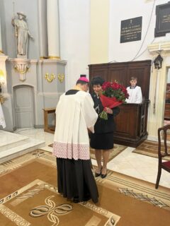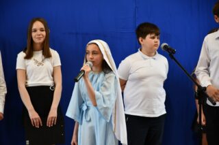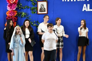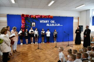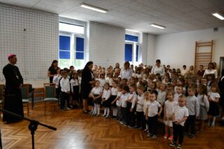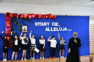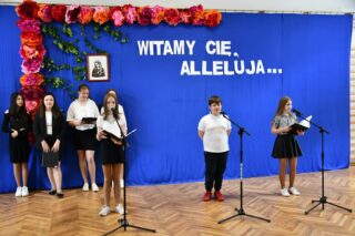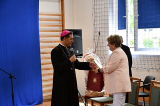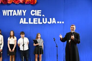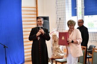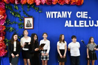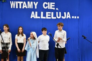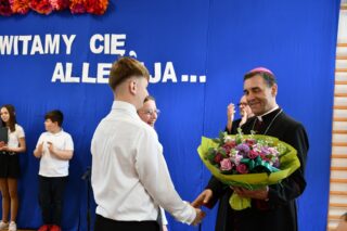 Zespół Edukacyjny w Sterdyni był ostatnim punktem programu wizytacji. Zanim słowa pozdrowienia skierowała dyrektor placówki Bogumiła Steć, ks. Biskupa radosnym wierszem powitały przedszkolaki. Dzieci i młodzież zaprezentowały część artystyczną nawiązującą do obchodzonego 26 maja Dnia Matki. W tym kontekście przypomniały postać Matki Najświętszej. Jednocześnie zadeklarowały, że chcą na wzór młodego Jezusa wzrastać w mądrości i w łasce u Boga i u ludzi. W część artystyczną zaangażowane były nie tylko osoby występujące na scenie, ale również publiczność, która żywo włączała się poprzez słowo i śpiew. Ks. Biskup wyraził radość ze spotkania, udzielił pasterskiego błogosławieństwa życząc, by dzieci i młodzież pozostały wierne danemu słowu trwania przy Panu Bogu.