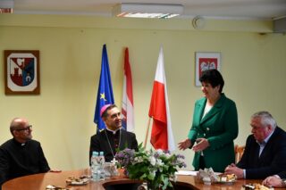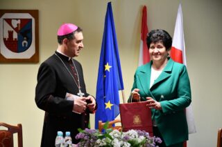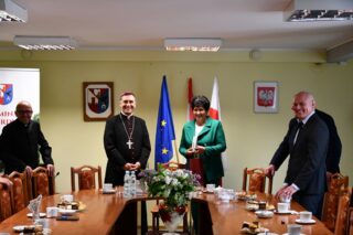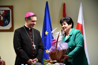 W poniedziałek 22 maja ks. Biskup odwiedził Urząd Gminy. W progu powitała go wójt gminy Grażyna Sikorska. Podczas spotkania, na którym obecni byli również pracownicy na czele z przewodniczącym Rady Gminy Andrzejem Pogorzelskim, dokonała prezentacji gminy, jej charakterystyki oraz opowiedziała o ostatnich dokonaniach i planach na przyszłość. Ks. Biskup udzielił zebranym pasterskiego błogosławieństwa.