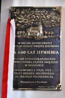Centrum obchodów stanowią uroczysta Msza św. celebrowana 3 maja br. pod przewodnictwem bp. Piotra Sawczuka. Obecny był również bp Antoni Dydycz, kapłani pochodzący z tej parafii i na przestrzeni lat pracujący tu duszpastersko. Tuż przed rozpoczęciem Eucharystii historię tej wspólny parafialnej przybliżył ks. prał. Zbigniew Rostkowski – wikariusz generalny diecezji drohiczyńskiej. Procesja wejścia zatrzymała się przy wejściu do świątyni, aby tam bp Piotr Sawczuk, wicepremier Jacek Sasin oraz burmistrz Hajnówki Jerzy Sirak mogli dokonać osłonięcia tablicy pamiątkowej. Miejscowy proboszcz ks. prał. Zbigniew Niemyjski oraz przedstawiciele parafii powitali przybyłych gości.