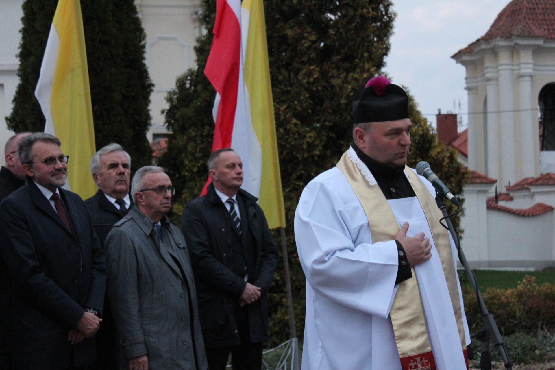 Duchowny podkreślał, że wspominamy to co Jan Paweł II uczynił dla Kościoła, dla świata i dla Polski, a wyrazem naszego podziękowania za Jego pontyfikat jest symboliczny gest złożenia kwiatów i pochylenia czoła z miłością, wdzięcznością i szacunkiem. Wyraził radość z kontynuowania wieloletniej tradycji spotkań z okazji Dnia Papieskiego, podziękował wszystkim za obecność i zaprosił do wspólnej modlitwy.