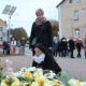 Przy pomniku Św. Jana Pawła II zebrali się duchowni, siostry zakonne, przedstawiciele władz samorządowych, szkół, instytucji, zakładów pracy, służby mundurowe – delegacje policji, straży pożarnej i leśników, poczty sztandarowe i orkiestra OSP Siemiatycze. Harcerze z 33 DH Adept trzymali wartę przy pomniku, a orkiestra pod batutą Michała Soszki zagrała „Barkę”. Przy dźwiękach werbla złożono kwiaty przy pomniku i zapalono znicze.
