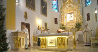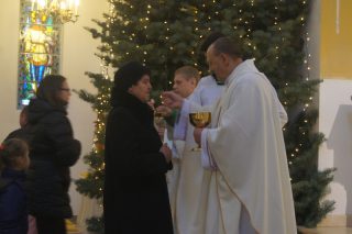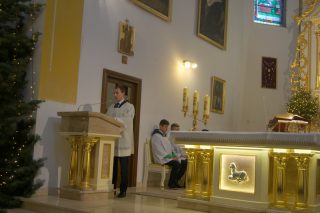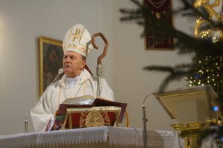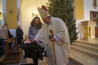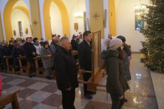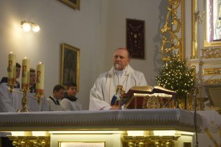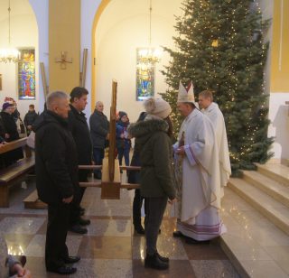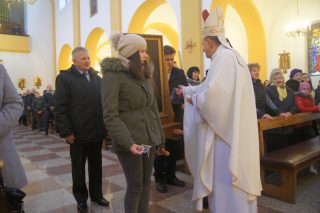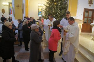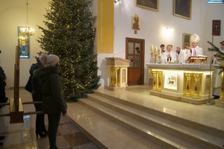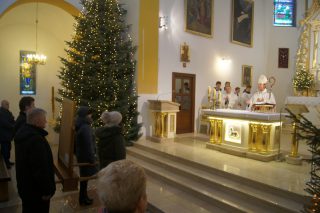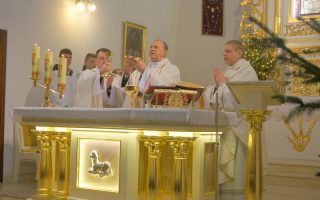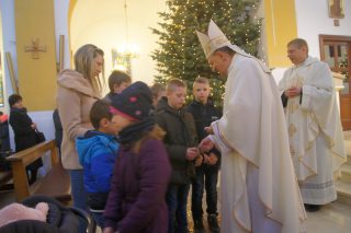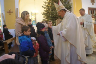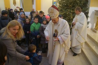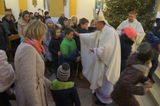 Na zakończenie Mszy św. ks. Biskup w sposób szczególny pobłogosławił mieszkańców wsi Błonie Duże, którzy od dzisiaj przyjmować będą w swoich domach i rodzinach wizerunek Chrystusa Miłosiernego. Wszystkim parafianom oraz ks. Proboszczowi Zbigniewowi Domirskiemu złożył też serdeczne życzenia noworoczne. Obecne na Mszy św. dzieci otrzymały z rąk ks. Biskupa pamiątkowe obrazki z wizerunkiem Świętej Rodziny.