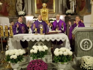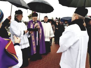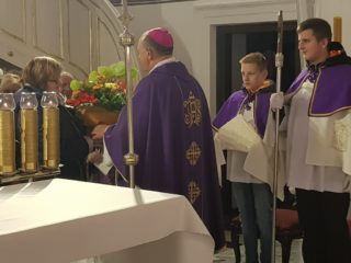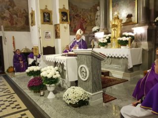 „Człowiek rodzi się, a w jego życie od początku wpisana jest śmierć” – mówi podczas homilii ks. Biskup. „Jeżeli o życiu człowieka możemy powiedzieć, że było dobre, nie ma złej lub dobrej śmierci. Ona przychodzi i zaczyna się nasze życie wieczne. Ks. Biskup przypomniał, że od momentu narodzin człowiek powinien żyć tak, aby zdobywać łaski na życie wieczne w niebie. Nie da się podzielić życia na ,,teraz” bez Boga i ,,później” spędzonego na modlitwie. To, co stanie się z naszą duszą, zależy od tego, jak wypełniamy Przykazania Boże każdego dnia. Ekscelencja podkreślił, że Pan Jezus po to oddał swoje życie na krzyżu, aby nas zbawić. To On otworzył nam drogę do Nieba.