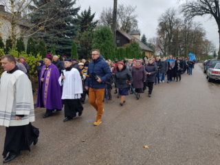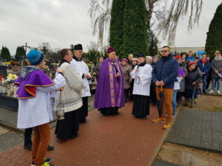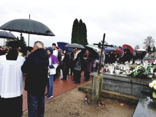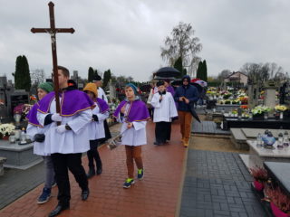 Po Mszy św. wyruszyła procesja żałobna na cmentarz parafialny, podczas której w modlitwie różnicowej Miłosierdziu Bożemu powierzano zmarłych. Po dotarciu na cmentarz Ks. Biskup przewodniczył przewidzianym na Dzień Zaduszny.