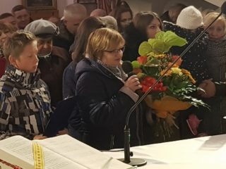Pasterza diecezji powitała młodzież oraz dyrektor Publicznej Szkoły Podstawowej w Wyrozębach – Podawcach Teresa Tarkowska. Przedstawiciele parafii złożyli również ks. Biskupowi życzenia z racji niedawno obchodzonych imienin.