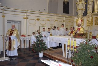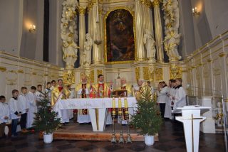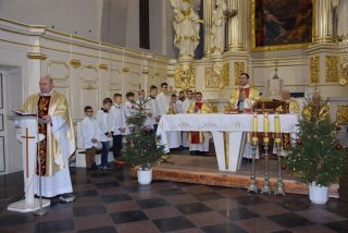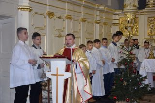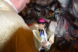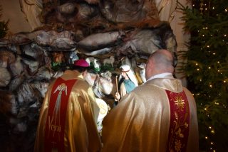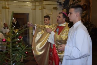 Wymownym gestem rozpoczynającym liturgię było moment, kiedy ks. Biskup wraz z kapłanami procesjonalnie zanieśli figurkę Dzieciątka Jezus i umieścili ją w przygotowanej szopce.