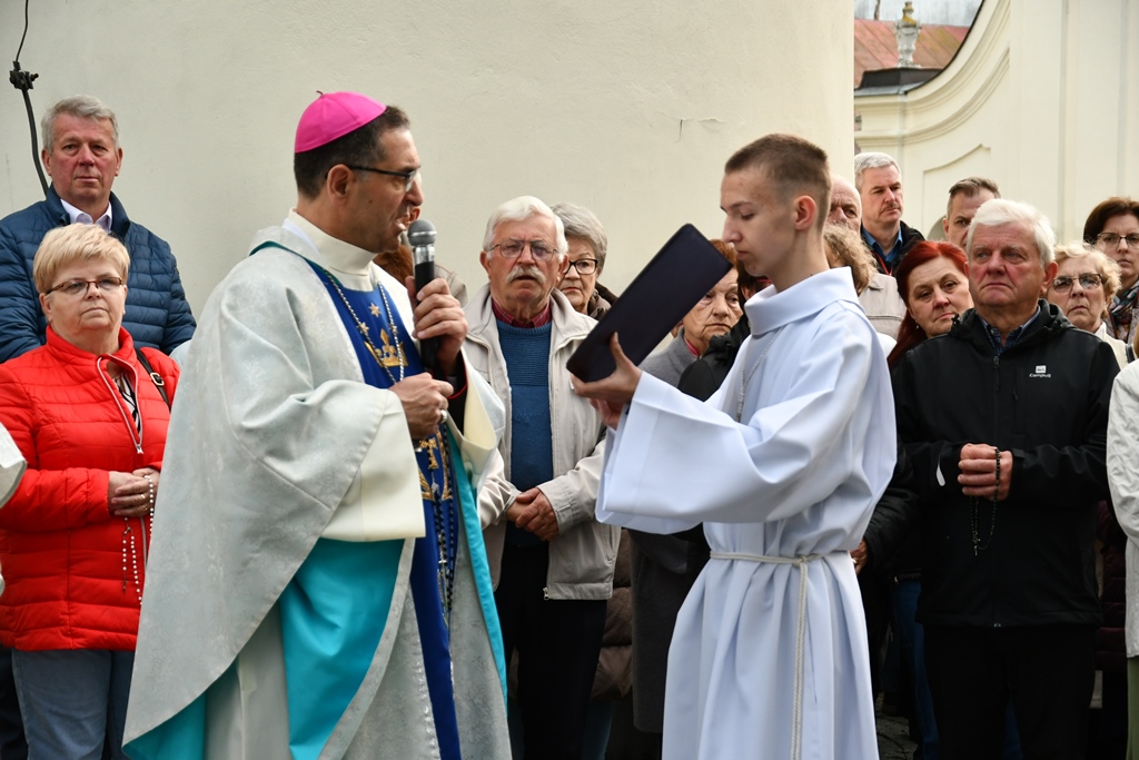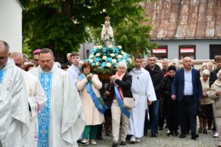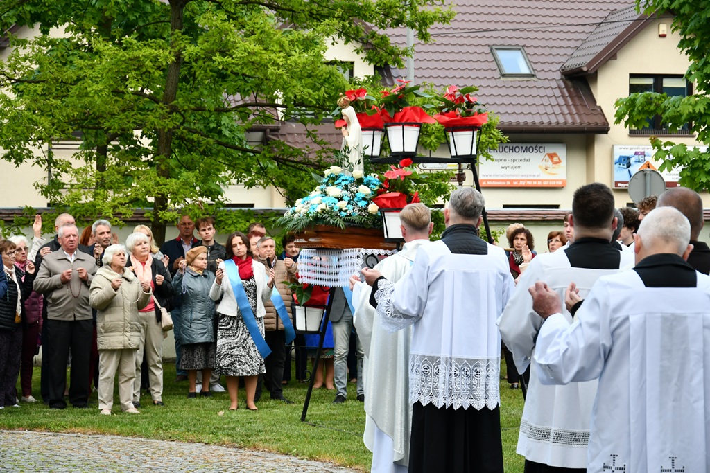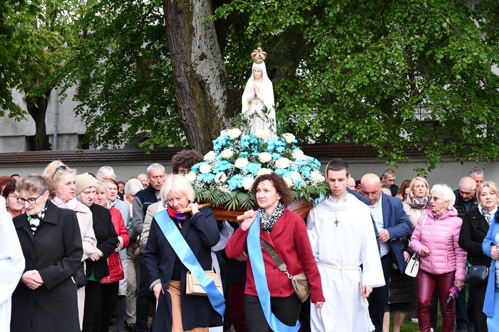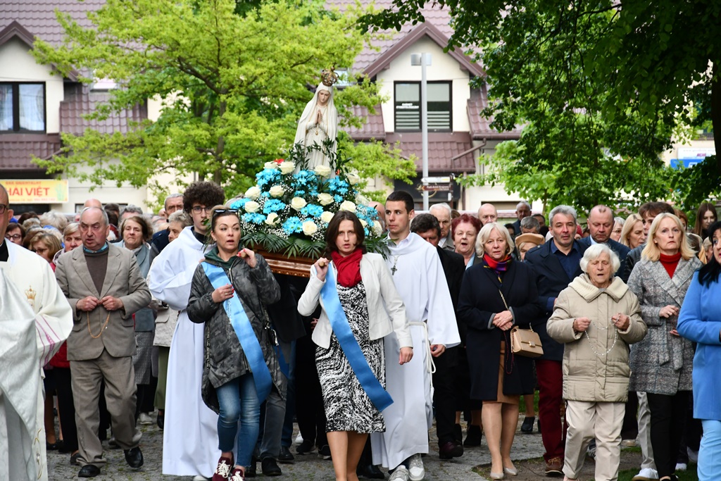Biskup przewodniczył Eucharystii oraz wygłosił słowo Boże. Jak zaznaczył, w naszej wędrówce przez życie idzie z nami Niebieska Matka, która czuwa, by nie zabrakło sił i byśmy nie pobłądzili. To Ona pociesza, umacnia i podtrzymuje na duchu. Podkreślił, ze Fatima jest bardzo jasnym miejscem na duchowej mapie ziemskiego globu, które rozsiewa promienie łaski. „13 maja 1981 r., 44 lata temu, promień łaski z Fatimy dotarł na plac św. Piotra w Rzymie i uratował życie św. Jana Pawła II. W koronie Pani Fatimskiej znajduje się kula zamachowca jako wotum za uratowanie życia. My również chcemy – jak anteny – ustawić się właściwe i nastroić, by odebrać jasne promienie Fatimskiej Pani. Niech one nas przenikają i napełnią miłą wonią Maryi” – powiedział.