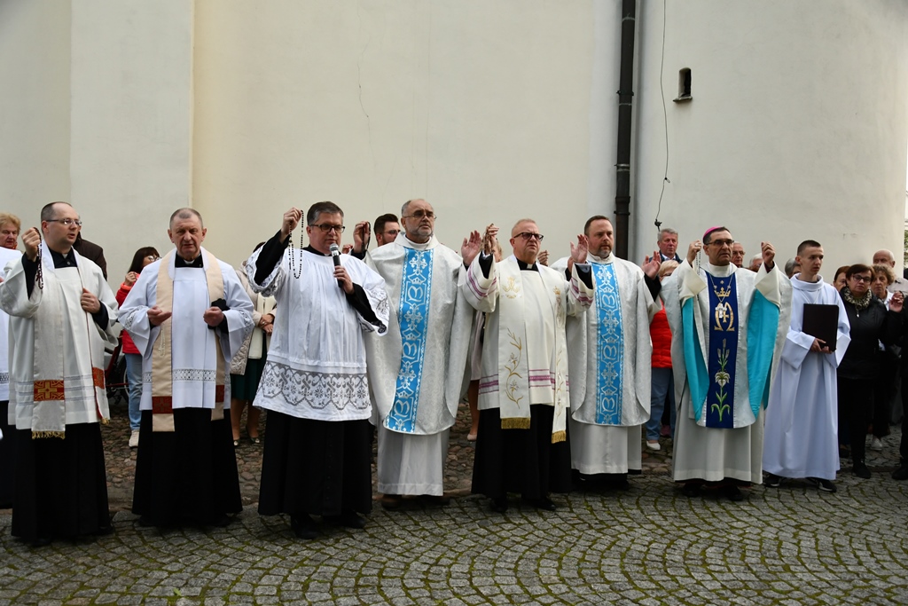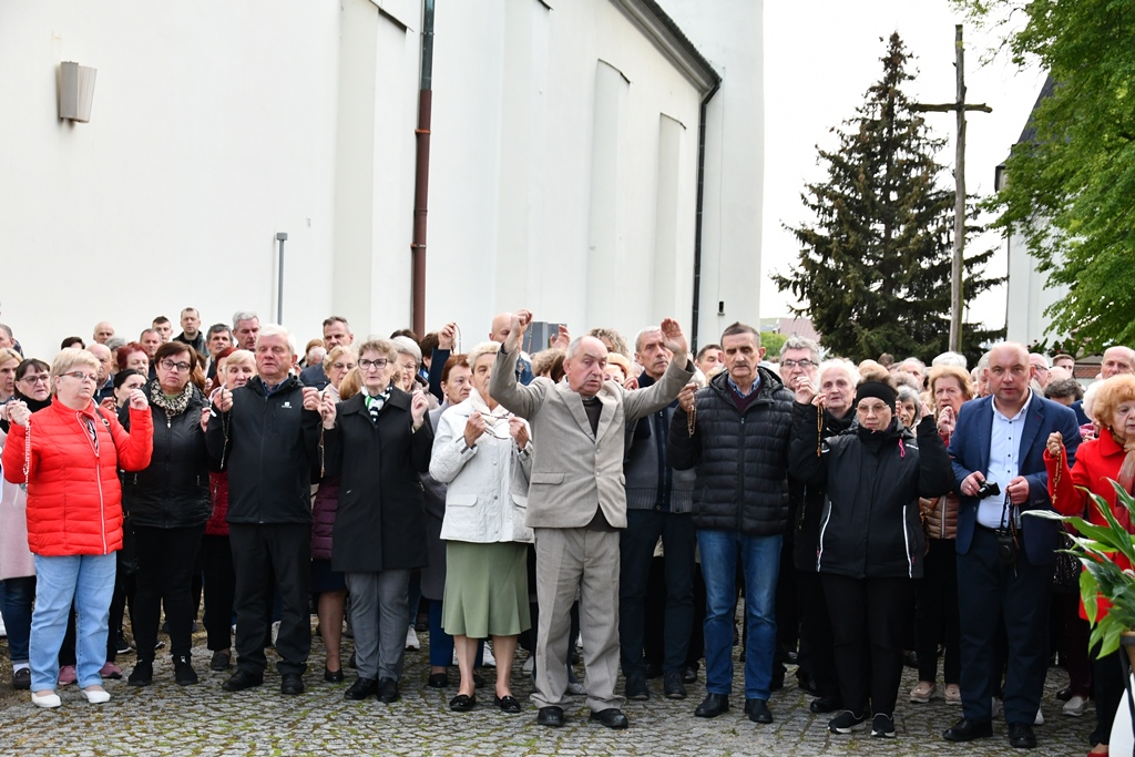 Zwieńczeniem była modlitwa różańcowa. Wokół świątyni przeszła procesja, której centrum stanowiła przyozdobiona figura Matki Bożej Fatimskiej. Wyznaczeni parafianie nieśli ją do czterech kwieciście przyozdobionych ołtarzyków. Przy nich biskup rozważał kolejne tajemnice części bolesnej. Wyznaczeni księża z dekanatu węgrowskiego odmawiali dziesiątki różańca. Na zakończenie odśpiewano Apel Jasnogórski.