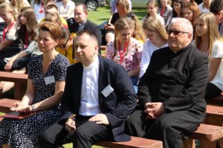 Obecni byli też księża, siostry zakonne, katecheci, nauczyciele i rodzice. Spotkanie stanowiło okazję do radosnego spędzenia czasu i wymiany myśli w malowniczej scenerii podlaskiej przyrody przy plenerowej agapie.