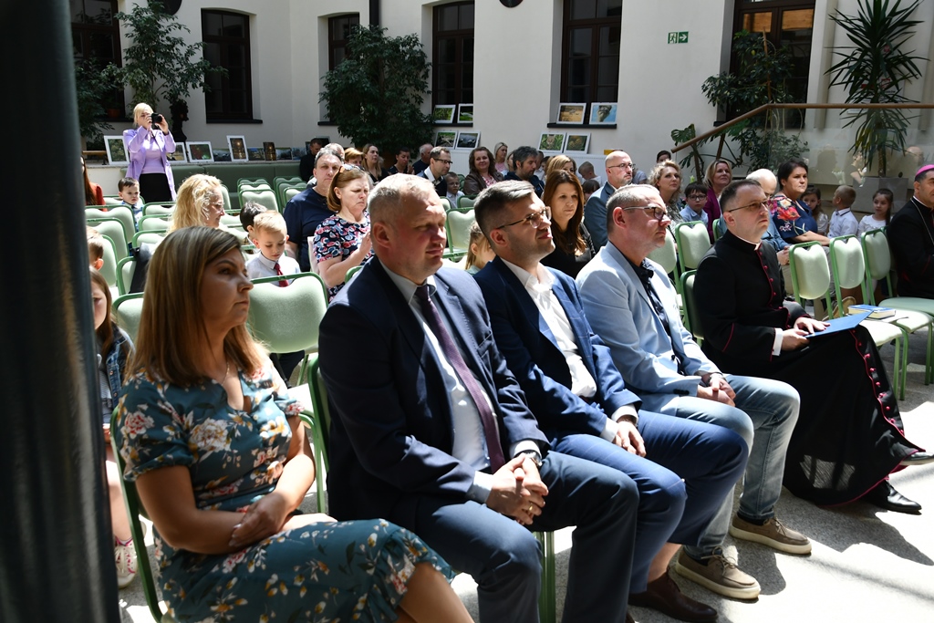 Na początku uroczystości wszystkich zebranych powitała Dyrektor Przedszkola ds. pedagogicznych Przedszkola Iwona Serafińska. Po Niej głos zabrał gospodarz ks. kan. Romuald Kosk – Dyrektor Przedszkola. Witając zebranych gości podziękowali wszystkim dzieciom, którzy wzięli udział w konkursie. Do komisji konkursowej przesłano 276 prac.