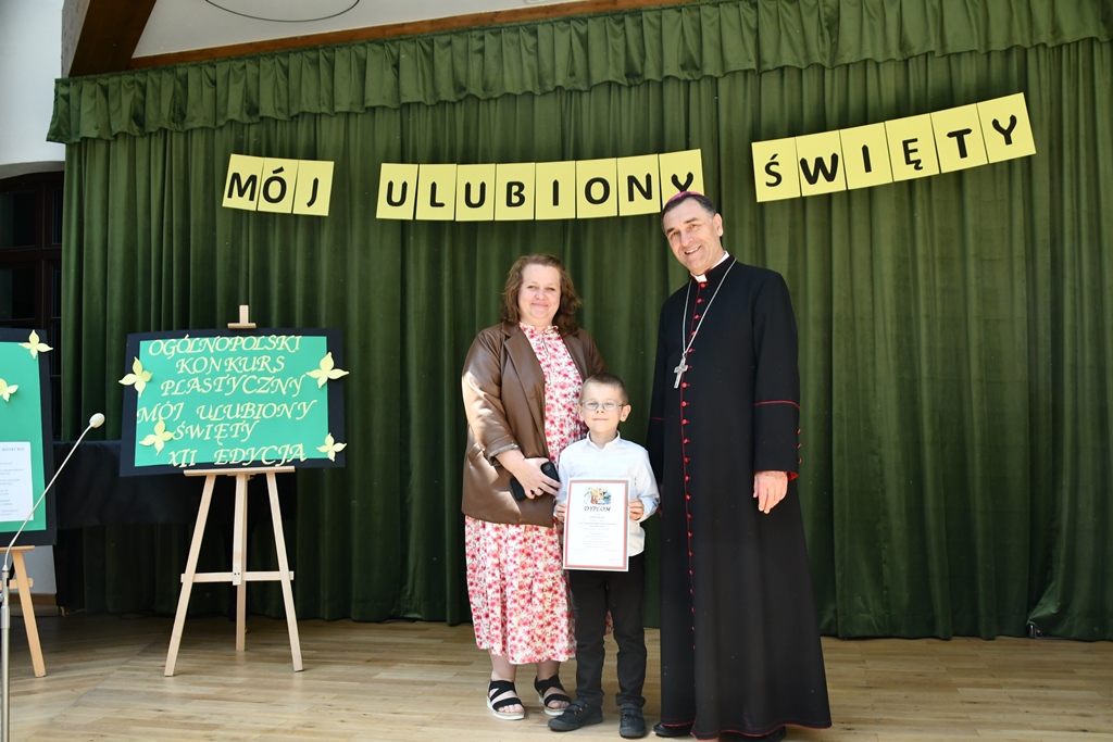 Jednym z Patronów Honorowych był bp Piotr Sawczuk. W swoim słowie podziękował uczestnikom konkursu. Przypomniał zebranym o najważniejszym przykazaniu jakie dał na Pan Bóg – Przykazaniu miłości Boga i bliźniego. To właśnie to przykazanie wypełniali w swoim życiu święci. Zachęcił dzieci aby i one wypełniały je w swoim życiu, a wówczas jak ich ulubieni święci, także będą świętymi.  Pasterz diecezji zakończył galę XIII Ogólnopolskiego Konkursu Plastycznego pt. „Mój Ulubiony Święty” pasterskim błogosławieństwem.