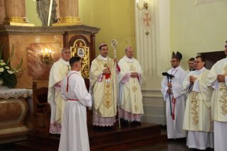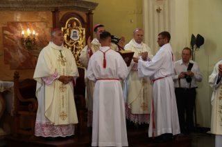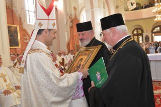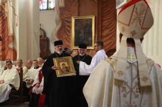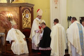 „Urodziłem się na Podlasiu, a teraz przychodzę do Drohiczyna, który jest historyczną stolicą tego regionu. Ciągle wiec pozostaje w jego granicach” – powiedział bp Sawczuk w homilii. Ekscelencja mówił o ziemi podlaskiej, która, jak zauważył, ma swoją historię, tradycję, kulturę i piękno. „Przed tym chwalebnym dziedzictwem trzeba chylić czoła, i tak też czynię” – podkreślił Biskup. „Ufam, że z Bożą pomocą potrafię udźwignąć brzemię odpowiedzialności za Kościół Drohiczyński i strzec duchowych skarbów, jakie ona ma. O to proszę i na to liczę, będąc wspierany przez dwóch Biskupów: bpa Tadeusza Pikusa i bpa Antoniego Pacyfika Dydycza”. Dodał, że opierając się na ich modlitwie, myśli, trudzie, chce budować dalej.