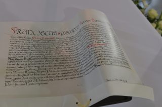 Przedstawiciel Nuncjatury Apostolskiej odczytał Bullę nominacyjną Papieża Franciszka, mocą której bp Piotr Sawczuk został powołany do posługi w diecezji drohiczyńskiej, po czym wręczył ją nowemu ordynariuszowi. Nowy pasterz Kościoła drohiczyńskiego otrzymał z rąk ks. Arcybiskupa Salvatore Pennacchio, Nuncjusza Apostolskiego w Polsce pastorał, symbol władzy pasterskiej w diecezji. Jest to pastorał papieża Piusa XII ofiarowany pierwszemu biskupowi drohiczyńskiemu ks. bp. Władysławowi Jędruszukowi. Wymownym momentem ingresu było wprowadzenie bp Piotra Sawczuka na katedrę. Następnie, przedstawiciele duchowieństwa, kapituł kanonickich, osoby życia konsekrowanego, alumni Wyższego Seminarium Duchownego w Drohiczynie, władze samorządowe, ludzie oświaty i nauki, pracy, służby mundurowe, ruchy i stowarzyszenia oraz wierni reprezentowani przez rodzinę z Siemiatycz złożyli przed nowym Biskupem drohiczyńskim homagium, będące publicznym aktem czci, szacunku i chrześcijańskiego posłuszeństwa.