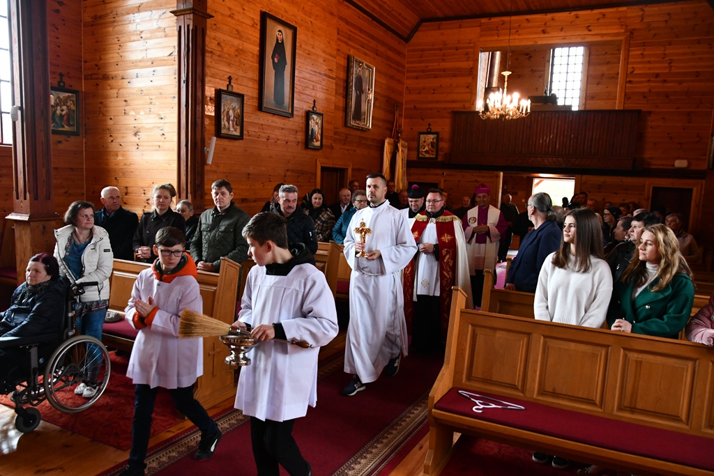 W homilii biskup przypomniał historię parafii, która sięga pierwszej połowy XVI w. Podkreślił, że ona jest cząstką Kościoła powszechnego. „W swojej strukturze i składzie osobowym podlega przemianom, ale jednocześnie jest zakorzeniona w niezmiennej tradycji apostolskiej i zmierza ku temu samemu celowi” – powiedział. „Wasza niewielka parafialna wspólnota stara się iść wiernie drogą Chrystusa. Jest za co Bogu dziękować. A wdzięczność jest bardzo ważną cechą człowieka” – dodał biskup. Wezwał do wspólnej modlitwy o Boże błogosławieństwo i potrzebne łaski dla proboszcza i całej parafii.