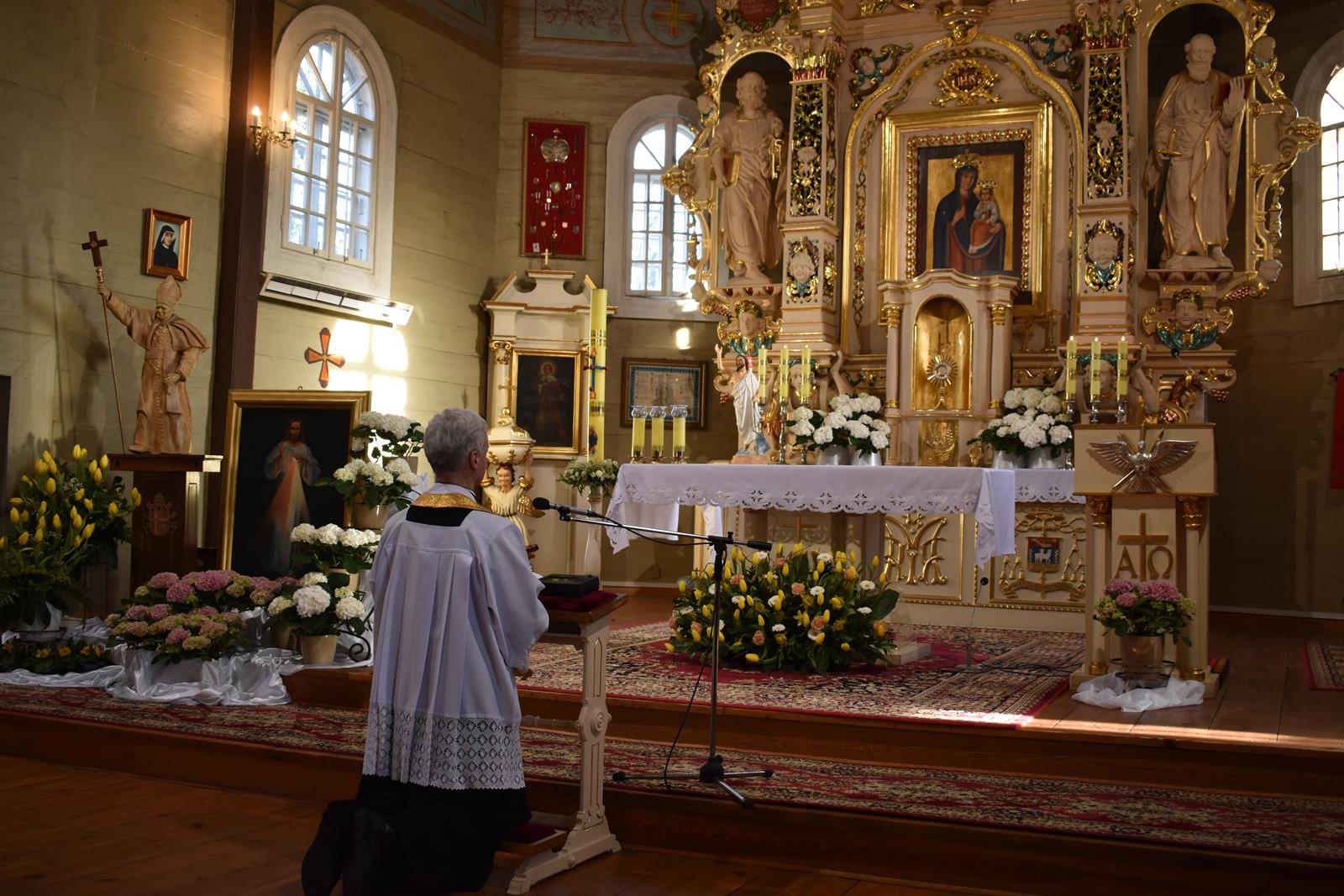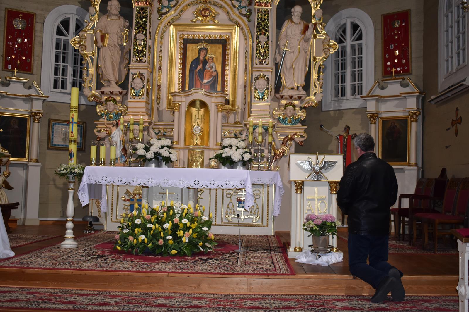 Jerycho Różańcowe rozpoczęliśmy Mszą św. we wtorek, 9 kwietnia, o godz. 1700. W kazaniu ksiądz proboszcz Krzysztof Napiórkowski przypomniał zgromadzonym historię zdobywania Jerycha przez Izraelitów. To bogate miasto o potężnych murach zostało zdobyte nie dzięki sile oręża, ale przez posłuszeństwo Bogu i pełnienie Jego woli. Ta historia uczy nas, że nawet to, co po ludzku wydaje się nierealne, dzięki wytrwałej modlitwie i Bożej pomocy jest możliwe do spełnienia. Po Mszy św. nastąpiło wystawienie Najświętszego Sakramentu i wspólna adoracja, której przewodniczył ksiądz proboszcz. Następnie modlitwę rozpoczęły koła różańcowe, a o godz. 20 w świątyni zgromadziła się społeczność szkolna. Między północą a godziną 6 rano czuwanie podjęły chętne osoby, które w ciszy trwały przed Chrystusem Eucharystycznym. Kolejnego dnia adorację kontynuowały koła różańcowe, a o godzinie 15 gościliśmy grupę modlitewną z Brańska, pod przewodnictwem zelatorki dekanalnej pani Bożeny Aleksiejuk, która przewodniczyła modlitwie w Godzinie Miłosierdzia. Jerycho w naszej parafii zakończyliśmy w środę, 10 kwietnia, Mszą św. o godz. 1600, którą poprzedziło zawierzenie naszych rodzin Matce Najświętszej i błogosławieństwo Najświętszym Sakramentem.